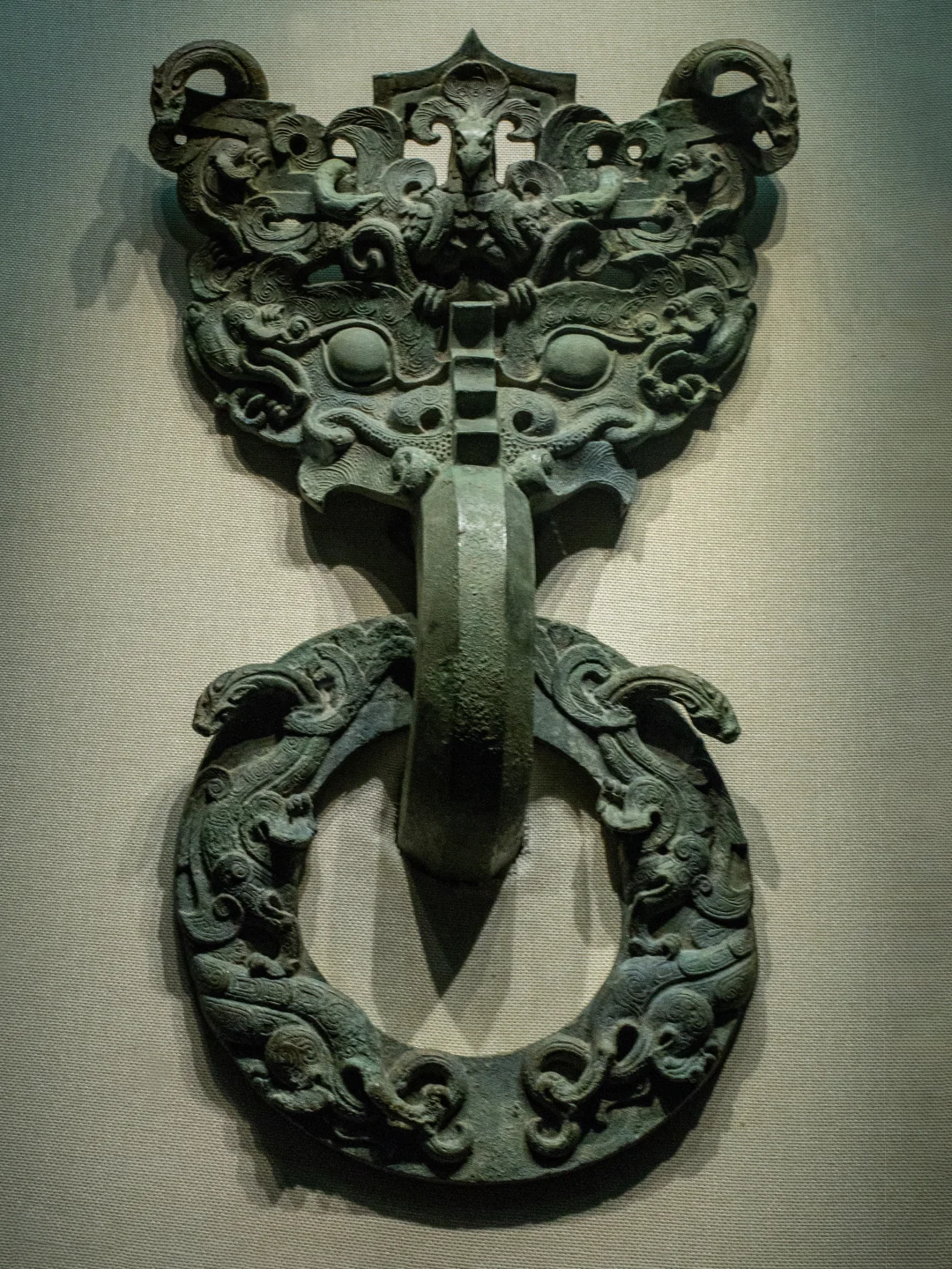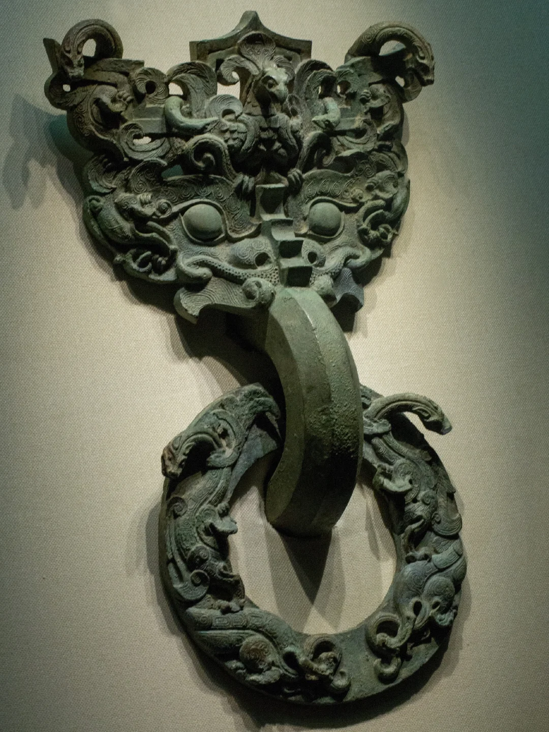 🖋️战国透雕龙凤纹铜铺首是战国时期青铜器。于1966年在易县燕下都遗址老姆台出土,现展出于河北博物院。是河北博物院的十大镇馆之宝之一,也是中国第一大青铜宫门铺首。