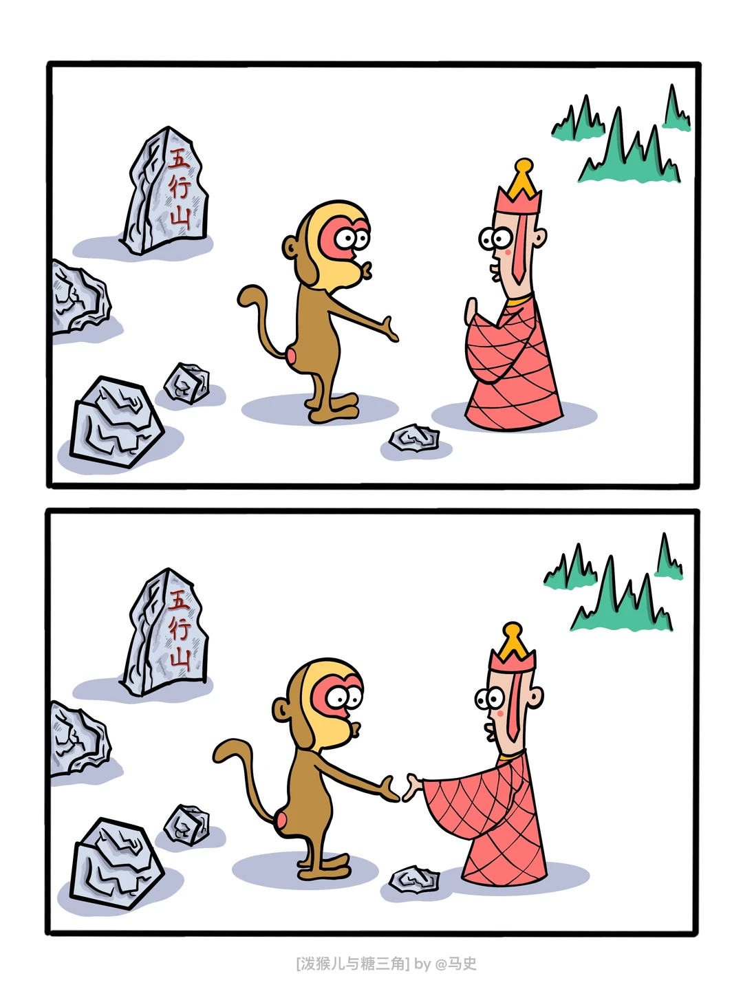 治愈系漫画 脑洞大开 西游记 原创漫画 抽象 泼猴儿与糖三角 猴子的命也是命 马喽 搞笑漫画