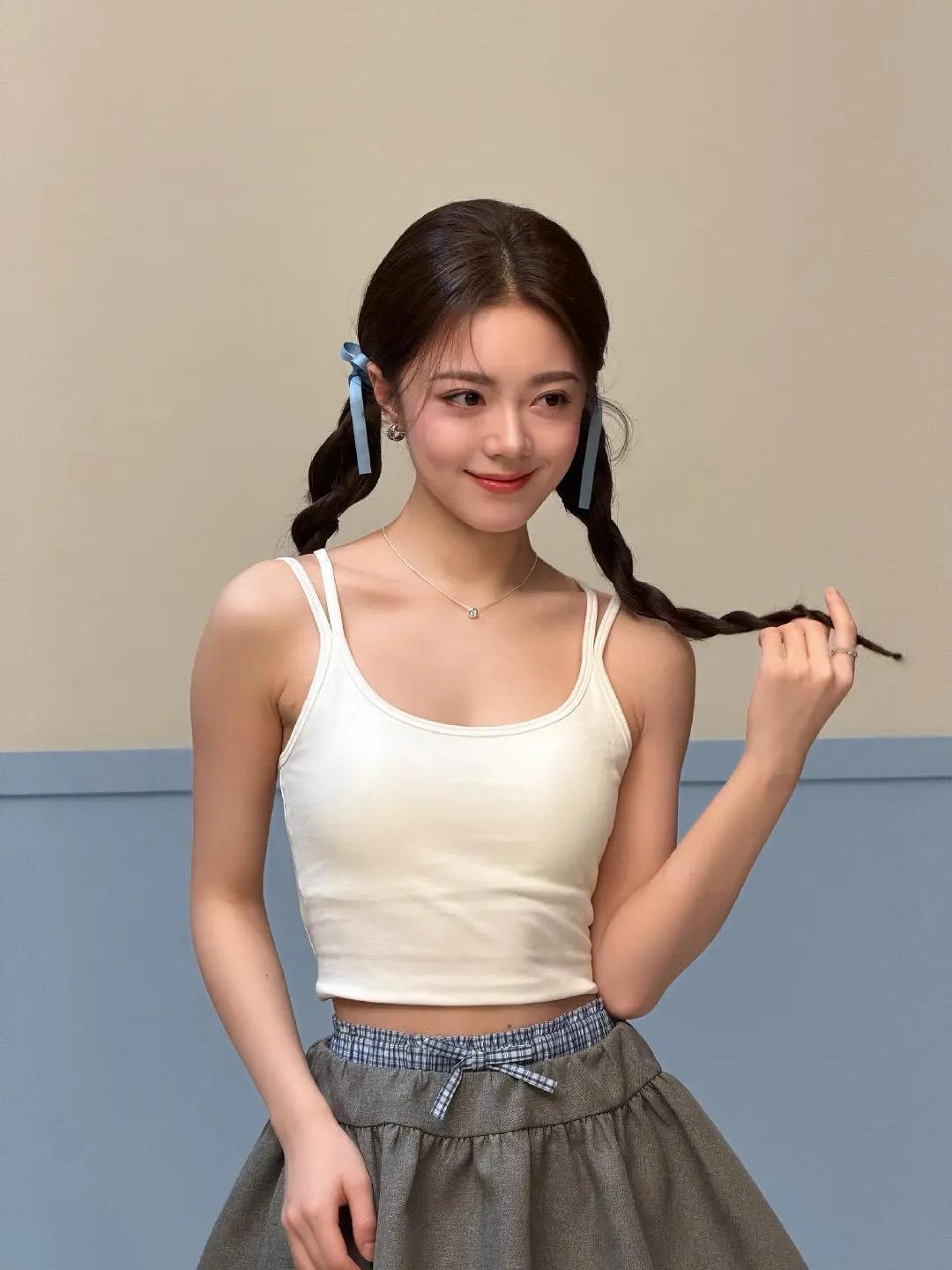 一位22岁的甜美女生,冷白皮,肌肤雪白有光泽,身材完美,黑色长发披肩,气质显瘦高