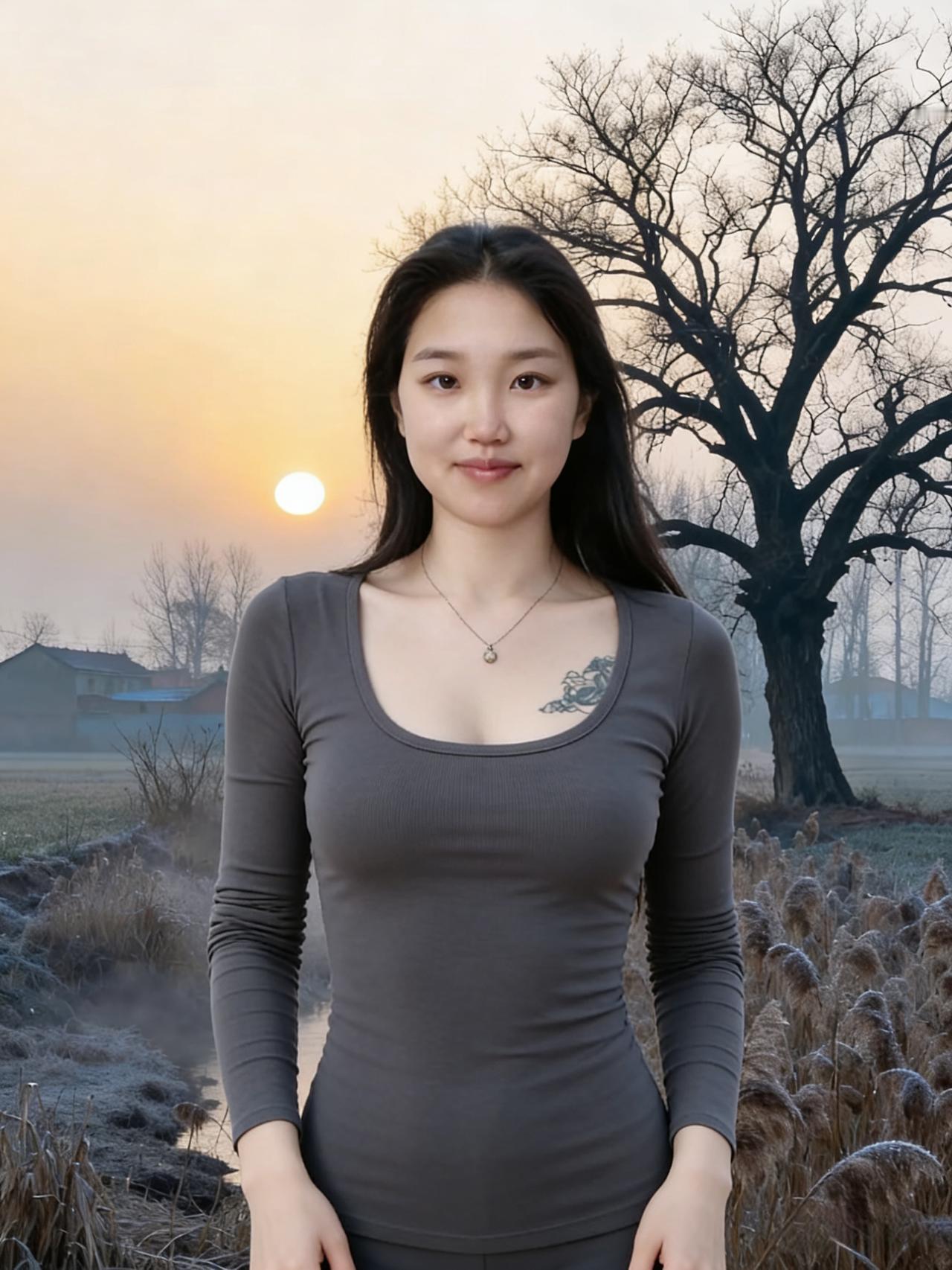 你从厨房的烟火里走来 带着油盐的温度,也带着诗的清欢 绿色的橱柜,映着你的侧脸 像一幅画,被时光轻轻晕染 ~ 你站在灶台前,锅铲轻扬 把日子炒成一盘盘温暖的菜 窗外的楼群,是城市的背景 而你,是这方寸天地里,最亮的光 ~ 项链的银辉,在油烟里也不褪色 纹身的墨色,在烟火中更显生动 你低头,看锅里的汤沸腾 像看一场,属于自己的人间剧场 ~ 有时你在街头,风扬起你的发 像一只自由的鸟,掠过城市的喧嚣 有时你在室内,绿植环绕 像一株安静的莲,在时光里生长 ~ 你不必刻意,美已自然流淌 在每一个日常的瞬间 在每一次不经意的转身 你都是自己的主角,也是人间的风景