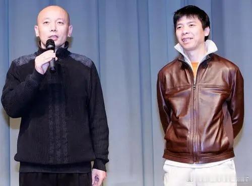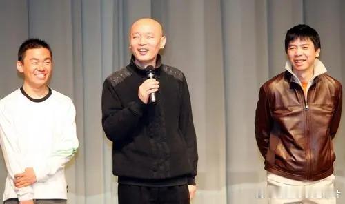 2006年元宵节,电影《天下无贼》剧组与奥运工程的建筑工人见面,图为导演冯小刚,主演葛优、王宝强。