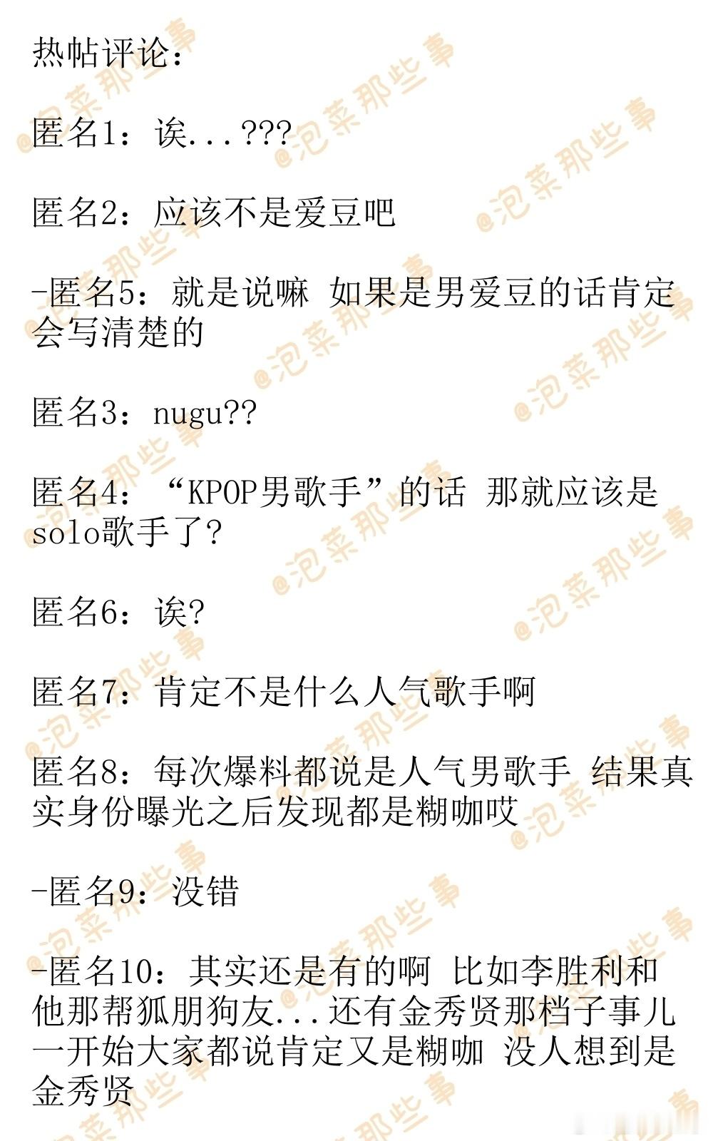 🔥韩网热帖评论翻译🔥曝kpop人气男歌手A某有孩子据韩媒报道,K-POP人气男歌手A某育有一名出生于2022年下半年的半非婚生子女,A某有在秘密支付抚养费,但亲子关系尚未完成法律登记。cr.instiz