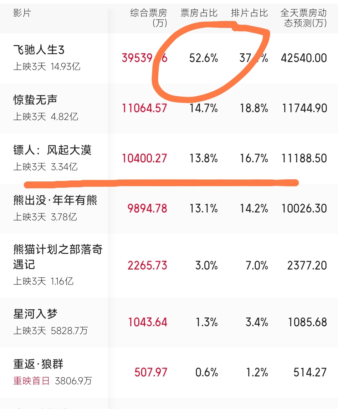 而后面的惊蛰无声、镖人和熊出没,都不到人家的1/3