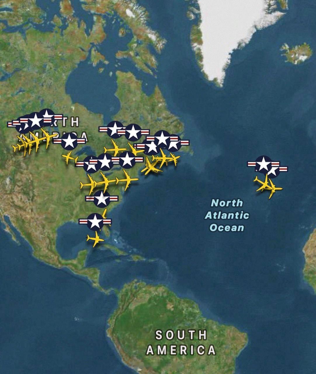 过去 24 小时内,大量美国空中加油机抵达中东和西亚地区。
