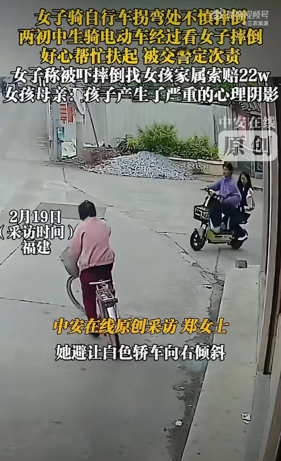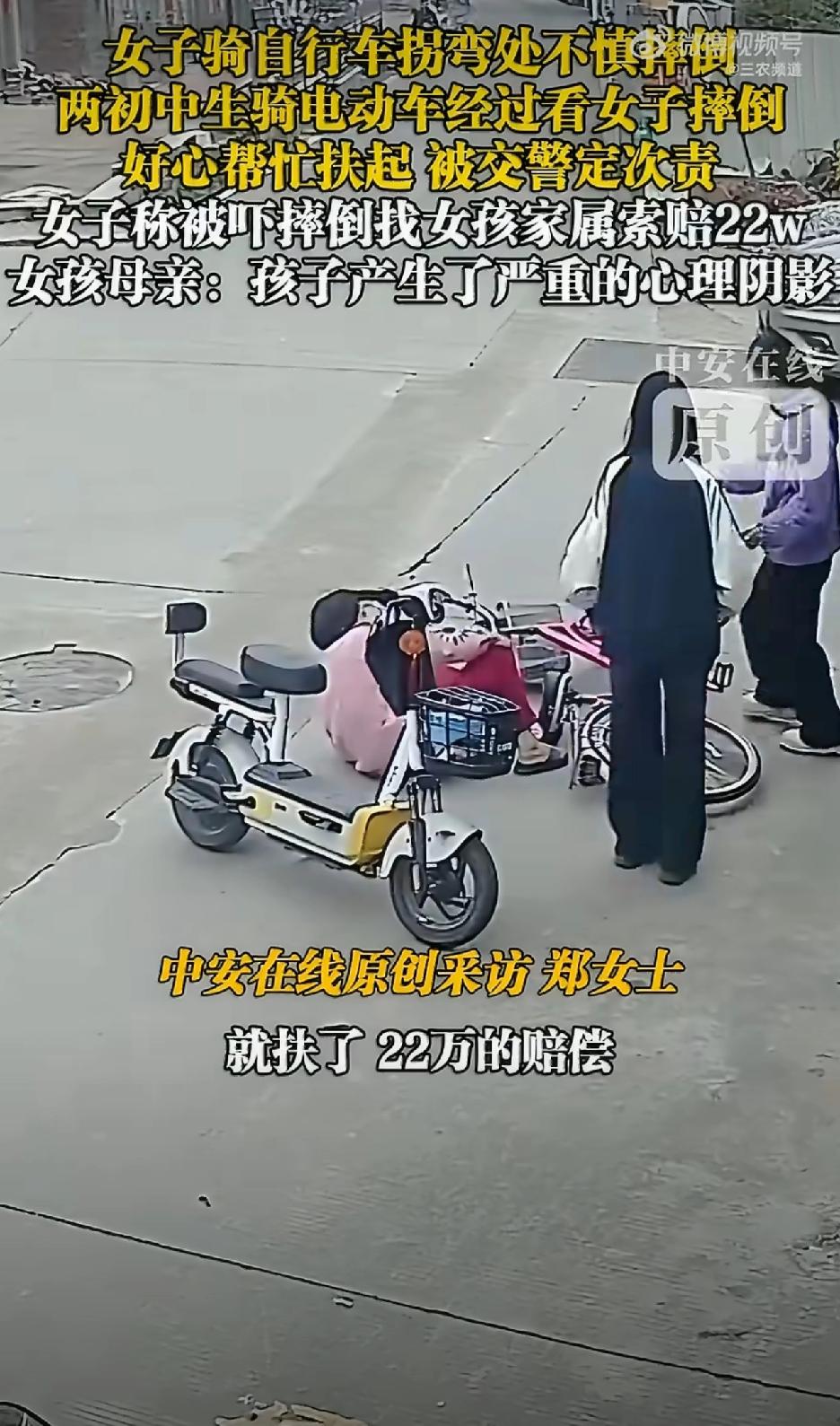 就因为在人群中多看你一眼,就要赔22万,吓死人哦。 所以说现在好人真不能做,2个初中生好心好意扶人起来,结果对方一口咬定是被她们吓得摔倒的,要赔偿22万,2个女生也被交警定了次责。 视频我看了好几遍,明明隔了那么远距离,也能说是被她们吓到导致摔倒,我确实无话可说,我以后不但不敢做好人,我还不敢离他们那么近,不然我怕被讹上,说我的气场吓到他们,那可咋整!