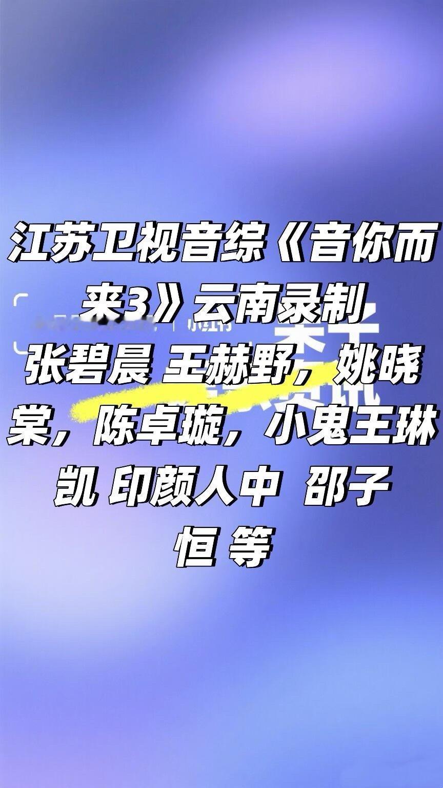 江苏卫视音综《音你而来3》云南录制张碧晨 王赫野,姚晓棠,陈卓璇,小鬼王琳凯 印颜人中 邵子恒 等