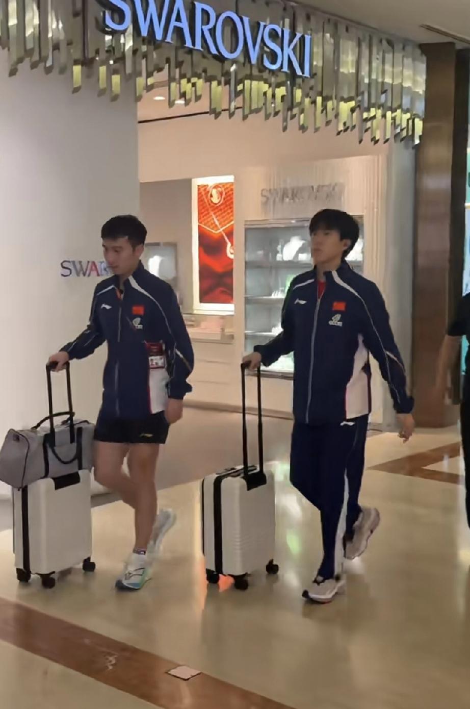 王楚钦今日跟随国乒团队一起到达新加坡参加WTT新加坡大满贯比赛。 刚落地新加坡机场,去酒店休息不到一个小时,王楚钦就和陪练牛冠凯一起从酒店出门,准备去训练馆训练。 看起来从酒店走出来还要经过一条商业街,WTT也是会做生意,安排的官方酒店都要靠国乒队员的流量引流周边商场。