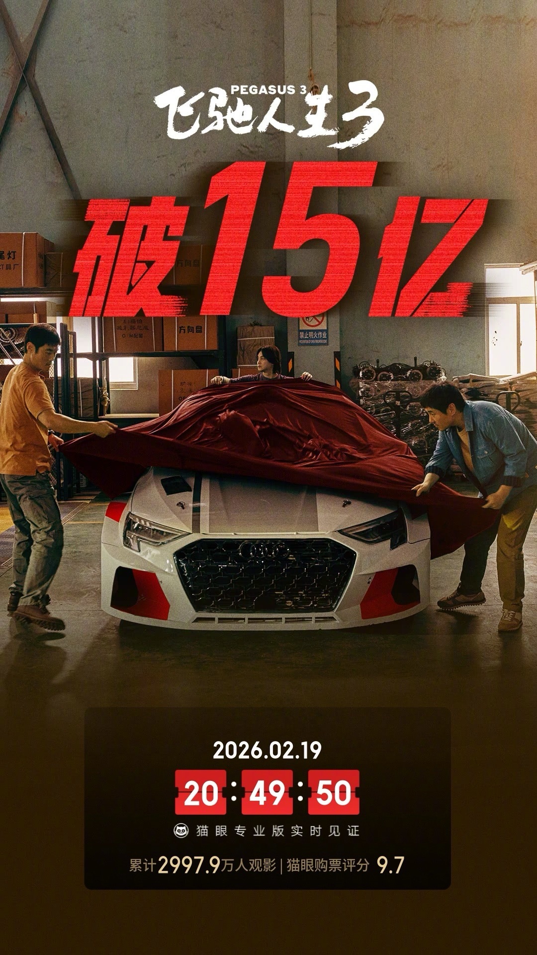 飞驰人生3票房破15亿据猫眼专业版数据,电影《飞驰人生3》上映3天,总票房破15亿。春节档马上有戏