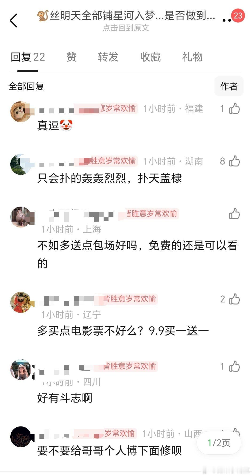 王鹤棣粉丝称明天将门毒后热搜全部铺星河入梦评论区这句“不修碑了 有进步”给我笑晕了!!!我之前的评论区真的见识过🤦♂️如果电影坚持不住撤档了 猴毛可怎么整啊