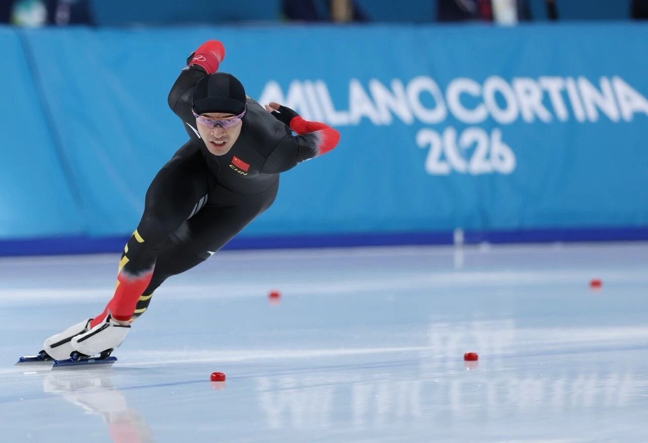 400米一圈的冰道,1分41秒98的热血时刻,冰刀划破跑道溅起冰花,每一次挥臂向前、每一步用力踏步都见证着他的完美发挥。