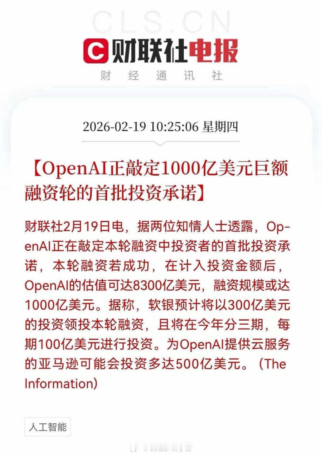 当软银300亿、亚马逊500亿的投资承诺尘埃落定,OpenAI这场千亿融资的资本狂潮,不仅撕开了通用人工智能的想象空间,更在A股市场投下了一颗精准的“产业链炸弹”——从算力基建到应用落地,那些深度嵌入全球AI供应链的中国公司,正站在风暴眼的中心。