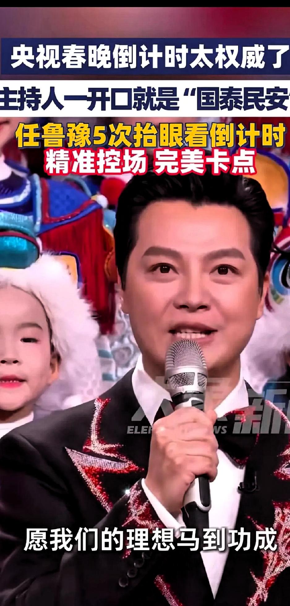 眼睁睁看着倒计时还差1分钟。 台上五位主持人都懵了。 没有额外提示,也没有现成预案,现场的时间掌控权,自然落到了任鲁豫身上。他手腕戴着备用计时设备,目光不时扫向舞台侧方的计时器,嘴里的祝福语从长句平稳切换到短句,语速快慢调整得恰到好处。 他全程按照节奏送出对家国、对百姓的祝福,将这段空白时间填得刚好。零点钟声敲响的瞬间,分秒不差,尼格买提上前拥抱时,才发现他眼眶泛红。事后他表示,不让观众看出异常,就是主持人的本分。 这并非他首次经历这样的场面,2025年蛇年春晚65秒空档,2021年近2分钟空白,他都凭借临场调整完成了控场。所谓直播里的稳,从来不是运气,而是台下日复一日的准备,以及面对突发时,守住岗位底线的职业素养。 这种藏在细节里的专业,才是直播舞台最坚实的底气。