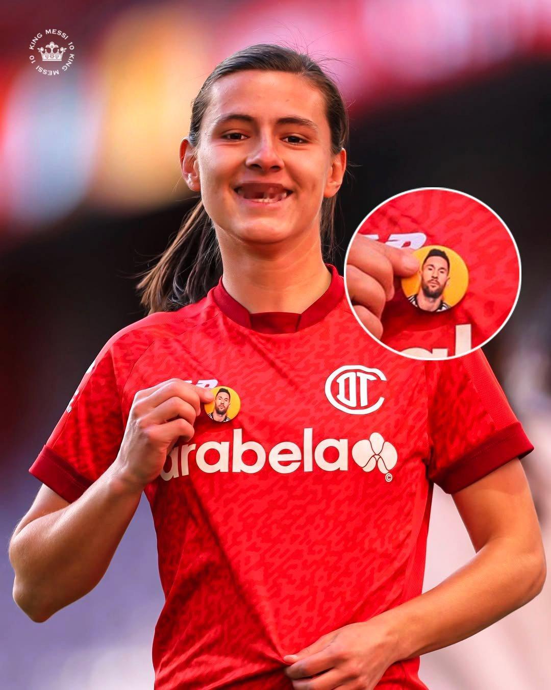 托卢卡女足的墨西哥🇲🇽球员纳塔莉娅·马西亚斯,在比赛期间随身携带着“全世界最棒的幸运护身符”,梅西徽章