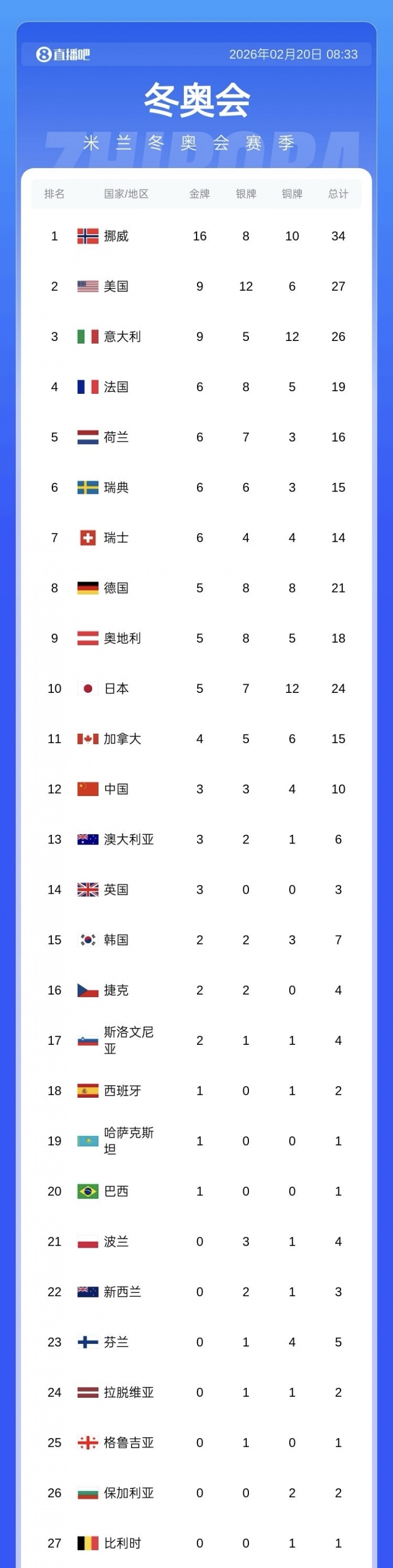 据米兰冬奥会官网统计,本届116个小项已产生95枚金牌,还剩21金有待决出。本届冬奥会闭幕式时间为北京时间2月23日凌晨3点进行。