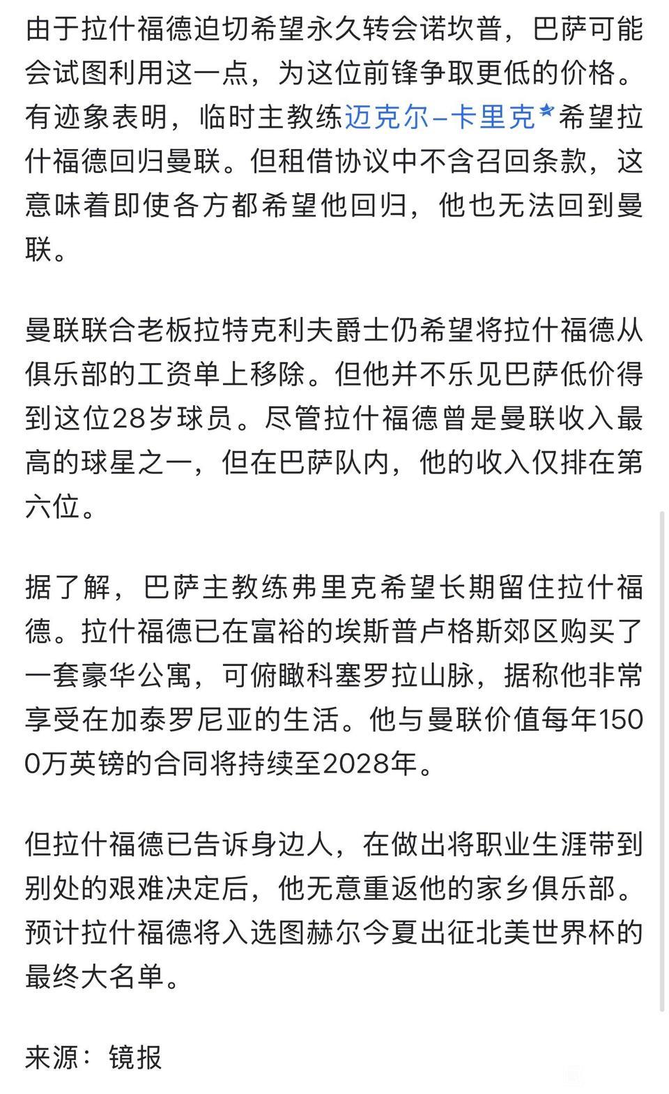 曼联后悔了,拉什福德只有2600万解约金。 当初要是5000万定位该多好,这么便宜卖给巴萨绝对亏本。 不过巴萨应该连这点钱都不想给,他们只想承担拉什福德的工资,西甲实在没钱呀。 所以曼联收回拉什福德,再卖给肯出5000万的球队呀!![可怜]