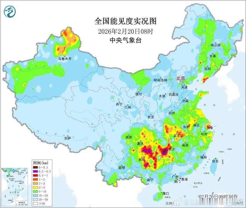 【雾】今晨在广西贵州湖南湖北的部分地区出现大雾。广西南丹、贵州遵义播州区、江口,8时能见度不到100米。湖南娄底、湖北荆门,8时能见度不到200米,均出现强浓雾。