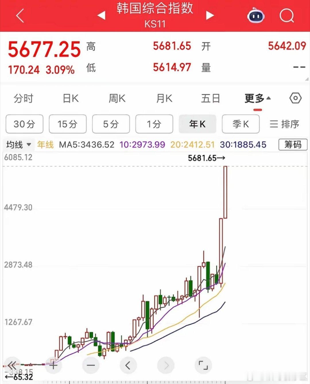 韩国股市现在这走势已经不是疯狂,是彻底失控。2025年干出75%的涨幅,今年刚开年又拉了快35%,这种斜率在金融史上都罕见。最吓人的是券商股。SANGSANGIN、SK、韩华直接30%封死,这种“旗手”板块集体高潮,通常只有一种解释:场外资金已经急红眼了。大家都在疯狂开户、融资、梭哈,券商的佣金赚到手软。这种行情逻辑很粗暴:1. 情绪已经烧过头了: 券商集体涨停往往是情绪见顶的信号。这种连拉带涨的走势,一旦获利盘想撤,高位踩踏会非常惨烈。2. 纯粹的逼空大战: 让观望的人崩溃,逼着他们在高位交枪入场接盘。一旦这波开户入金的增量资金断档,行情瞬间就会熄火。3. 透支未来的估值: 两年翻两倍多,这种涨幅早就把后面几年的利好全吃干抹净了。现在的韩国市场,全靠一口气顶着。这场巨大的博弈游戏,看谁最后跑得快。 满屏涨停确实诱人,但你得清醒点:你是去分钱的,还是去给这轮历史级泡沫站岗的?这种行情,千万别谈信仰。盯着成交量,一旦券商股开始放量却涨不动了,那就是大资金撤离的哨声。 守住利润比什么都强,别在最高位把自己搭进去。
