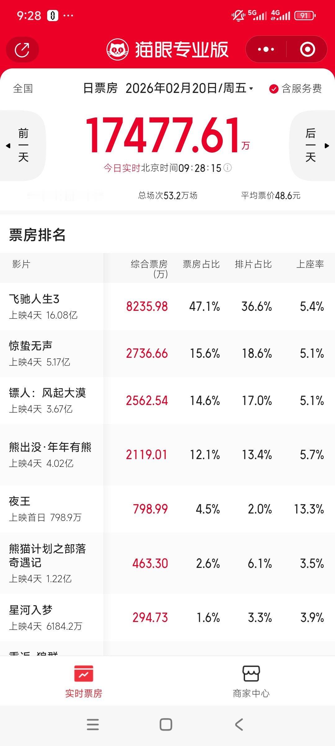 感觉《星河入梦》有口碑发酵的迹象。昨天排片3.8%,票房占比只有1.5%,今天排