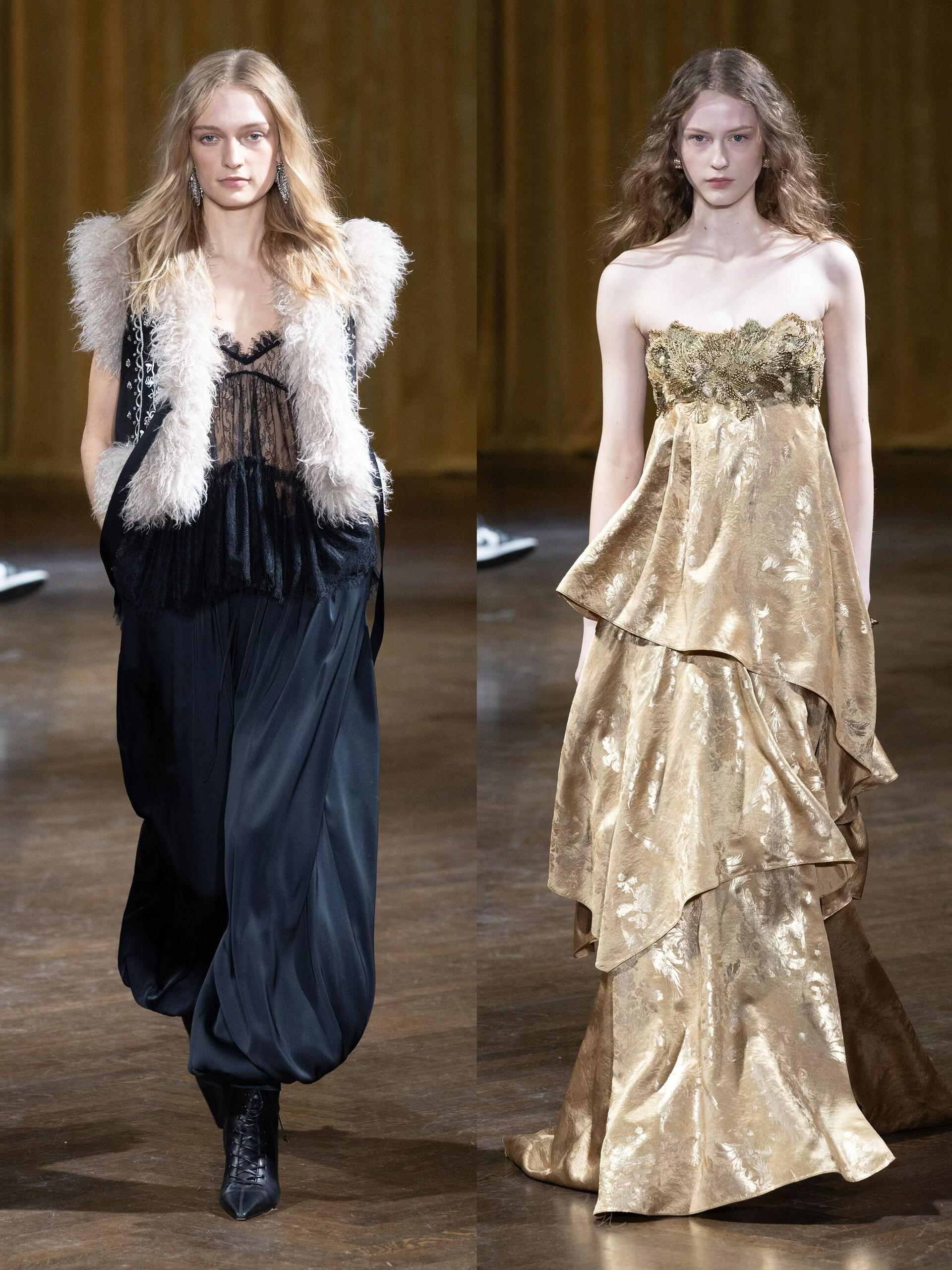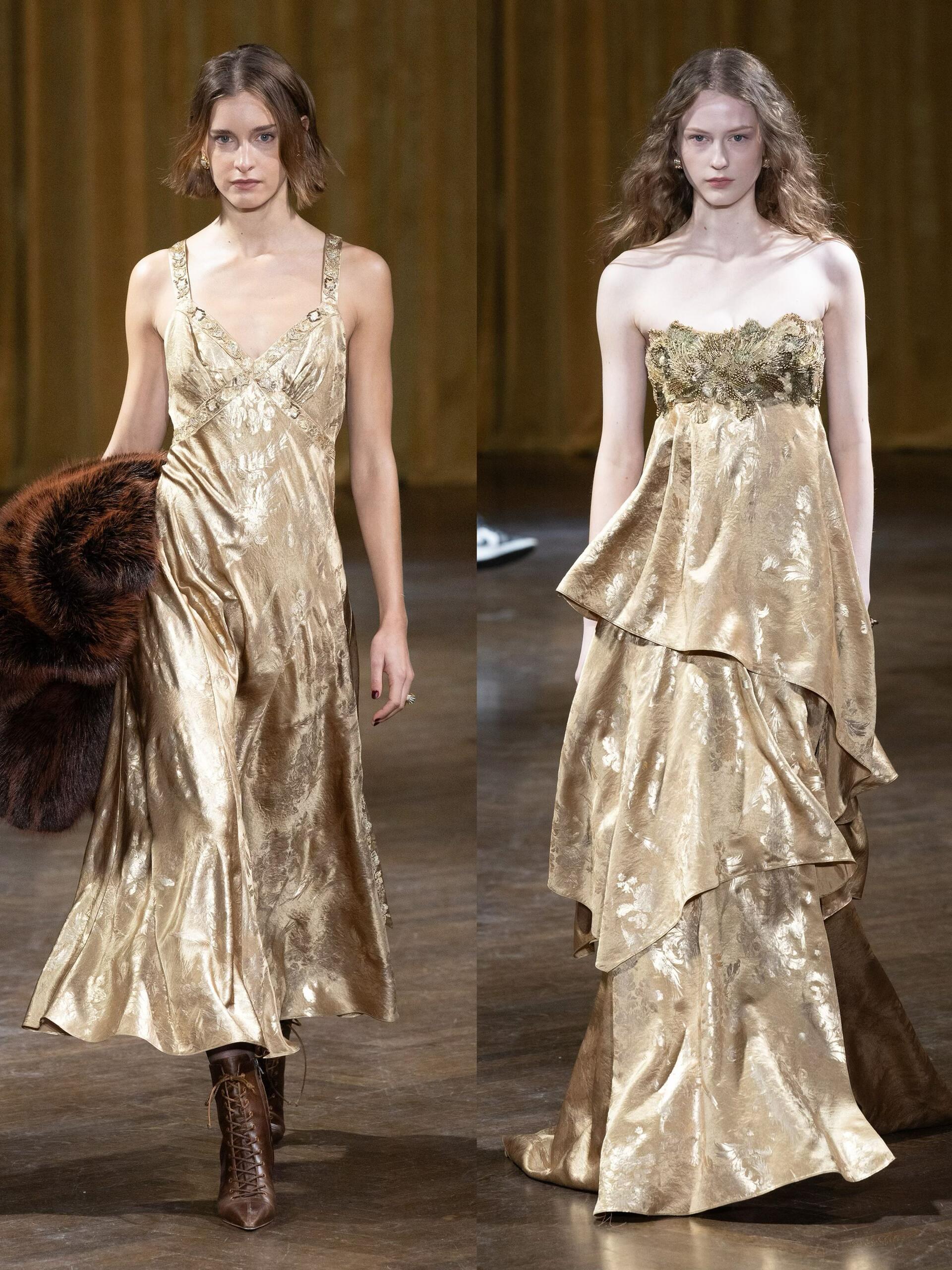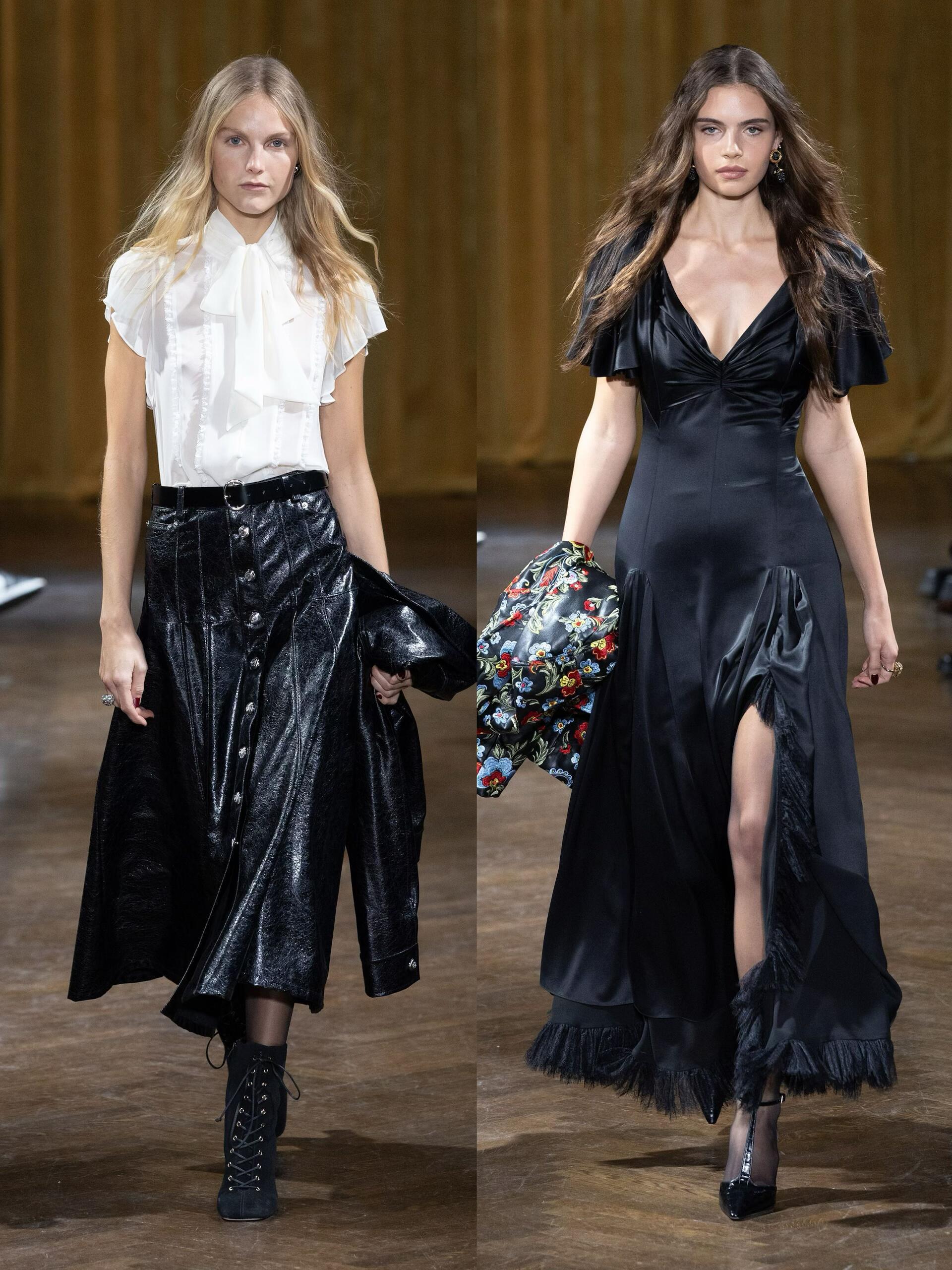 时装周纽约时装周大秀直击 Cinq à Sept 2026秋冬系列时装秀,以“颂赞”为主题,主打女性气质和内心力量。设计把70年代的活力搬到现在,用精致蕾丝和粗犷素食皮革碰撞,柔中带刚。图里这件红裙开衩设计超吸睛,又美又飒,完全是当代女性的写照。