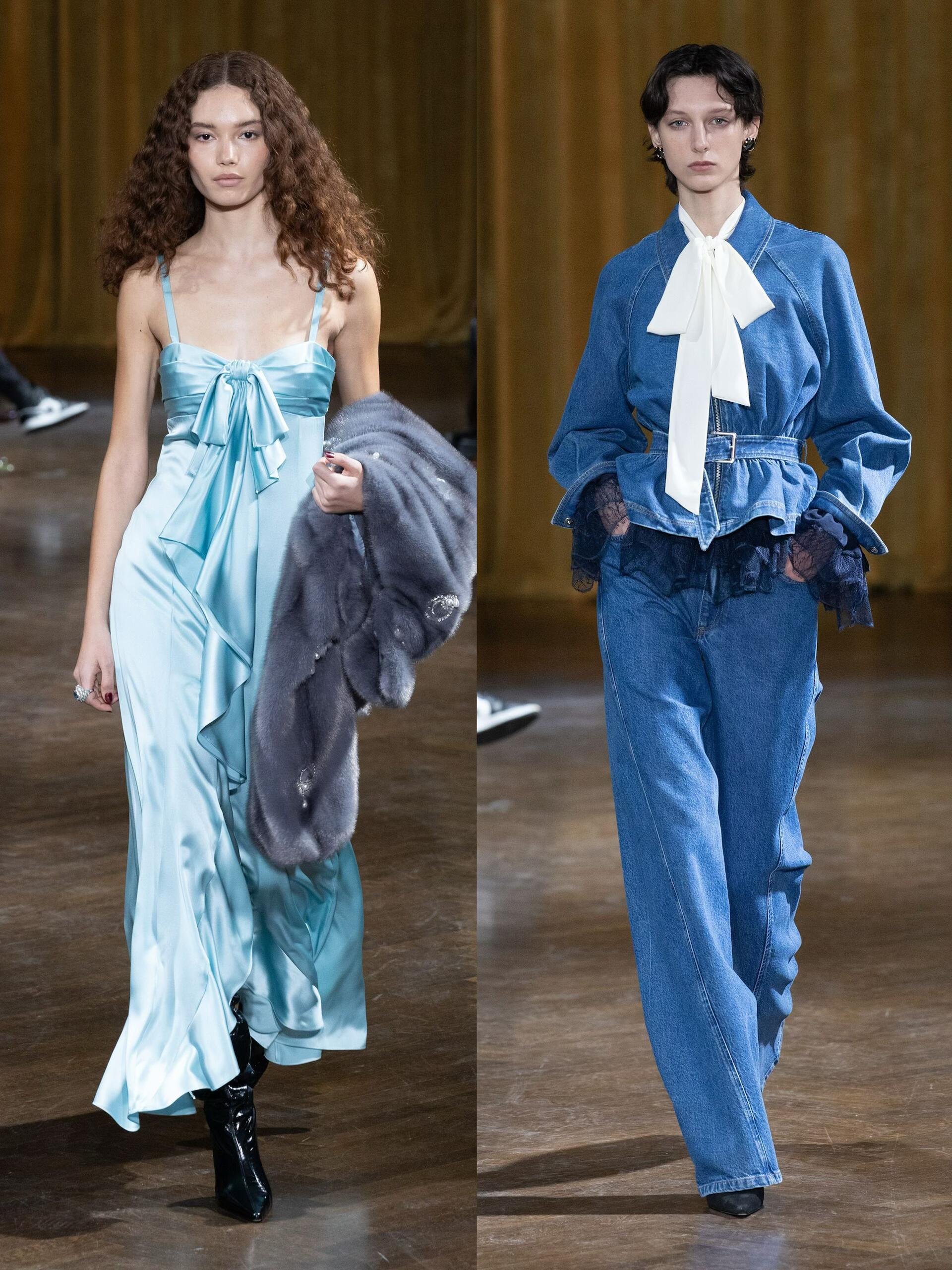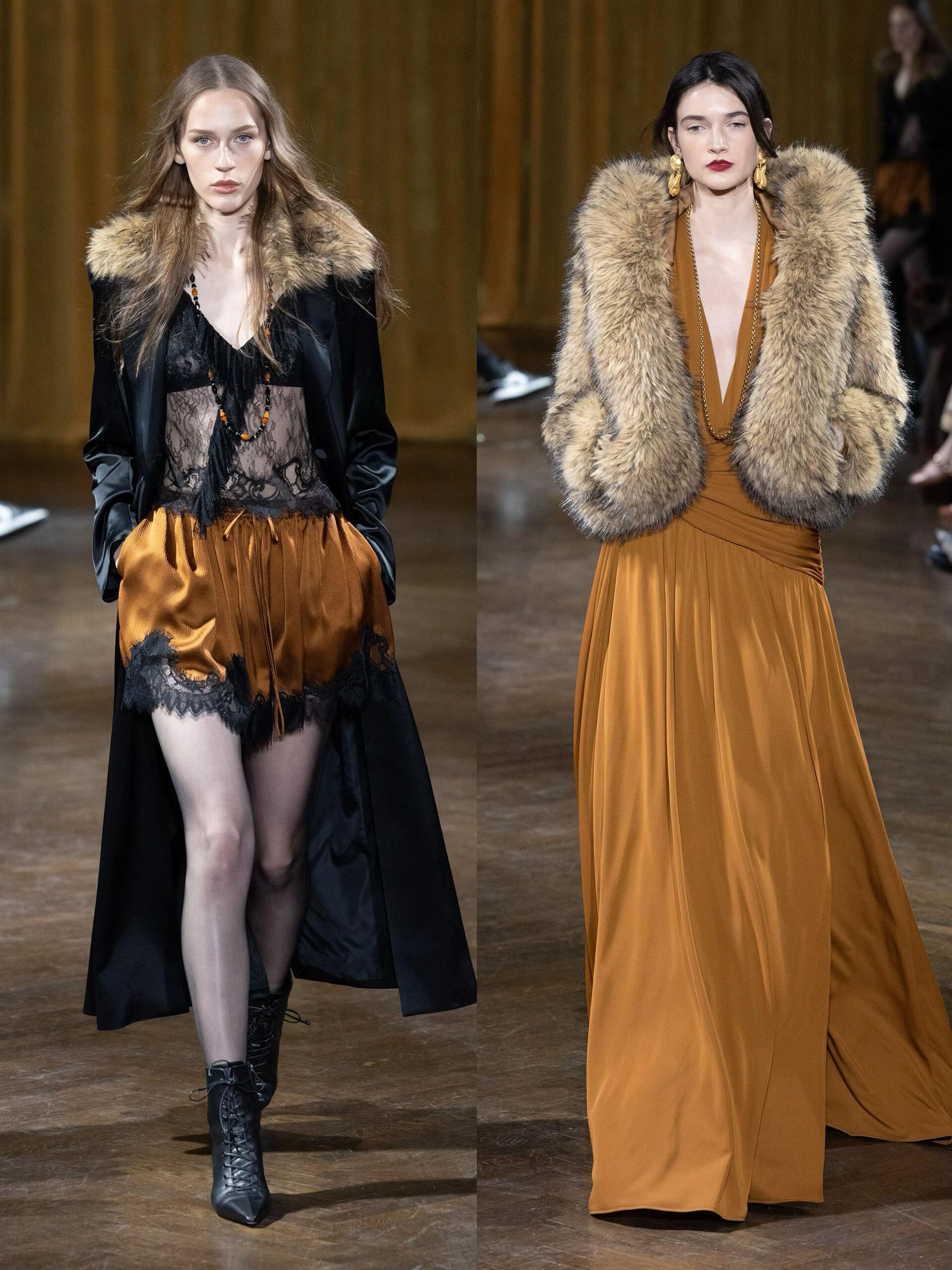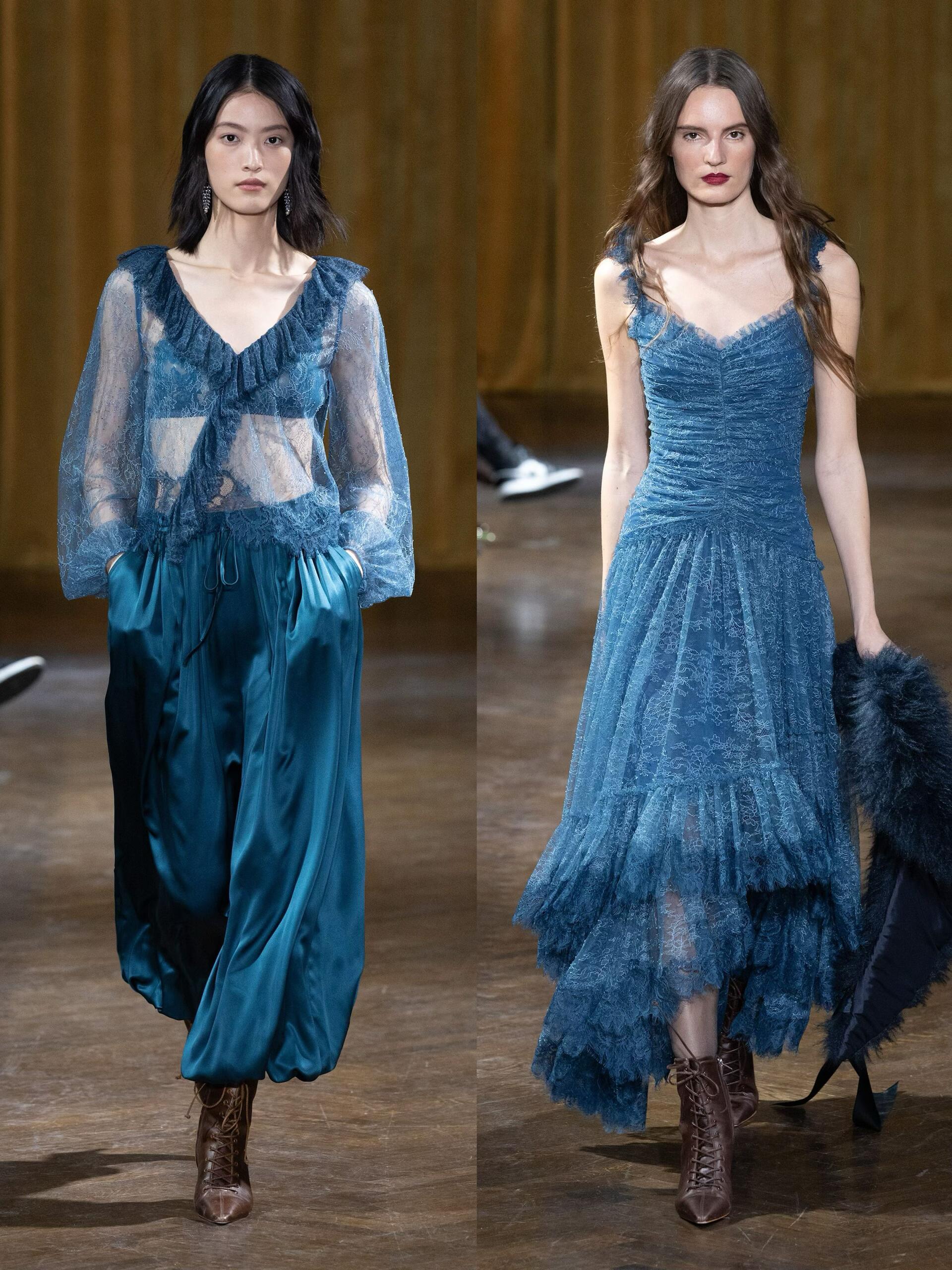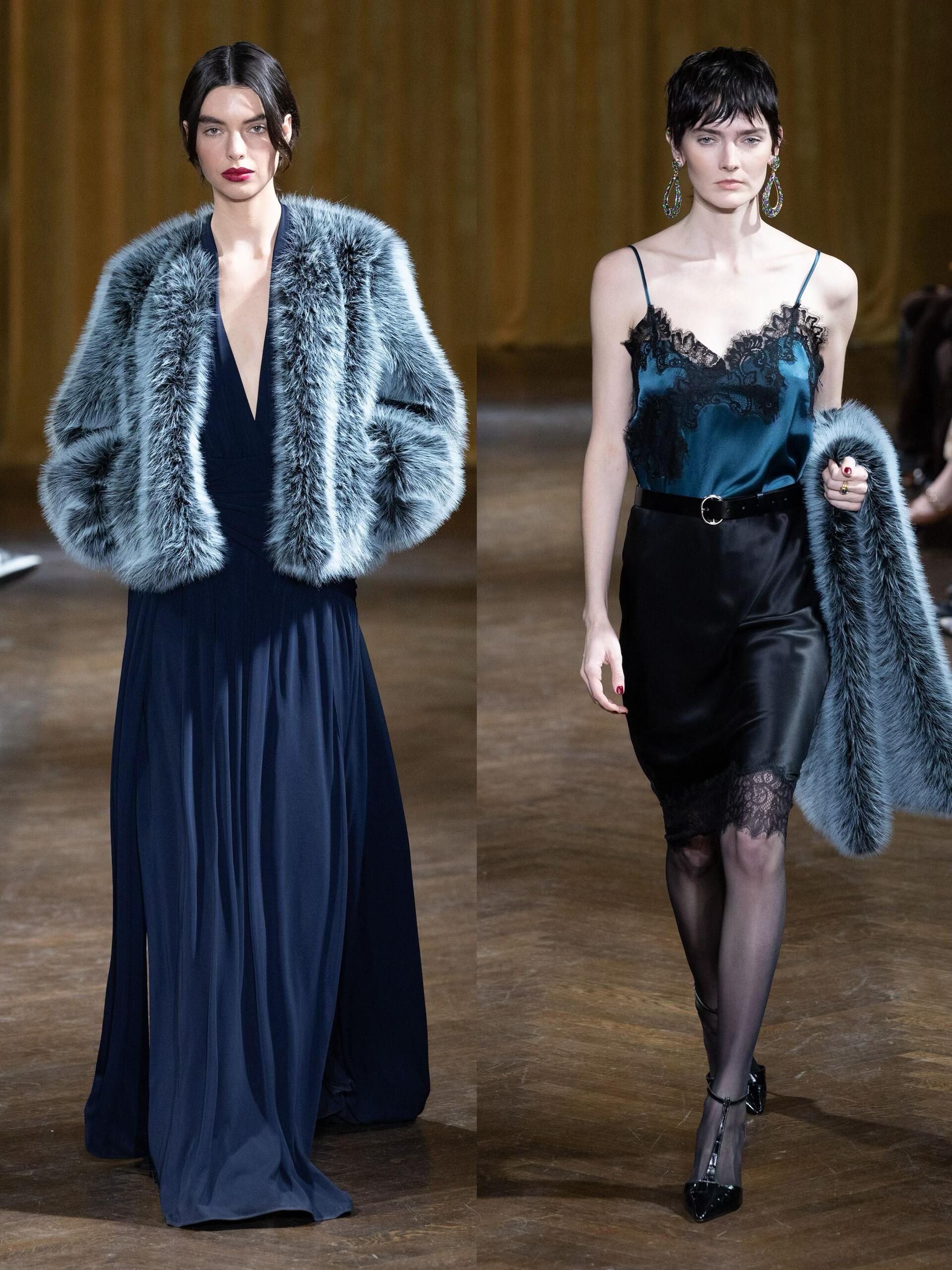 时装周纽约时装周大秀直击 Cinq à Sept 2026秋冬系列时装秀,以“颂赞”为主题,主打女性气质和内心力量。设计把70年代的活力搬到现在,用精致蕾丝和粗犷素食皮革碰撞,柔中带刚。图里这件红裙开衩设计超吸睛,又美又飒,完全是当代女性的写照。