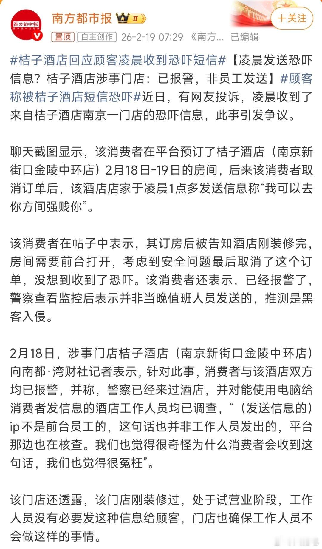 顾客称被桔子酒店短信恐吓 又是安全问题,住酒店本身要的就是一个安心和安全,结果你想住的酒店搞了这么一套操作……你不害怕?酒店说这不是他们的工作人员干的,那更可怕了,你的系统是如何被人给攻破的?如果是酒店的人干的,至少他还在明处,这合着直接在暗处了?真的是更可怕,所以这个事情酒店一定有责任。