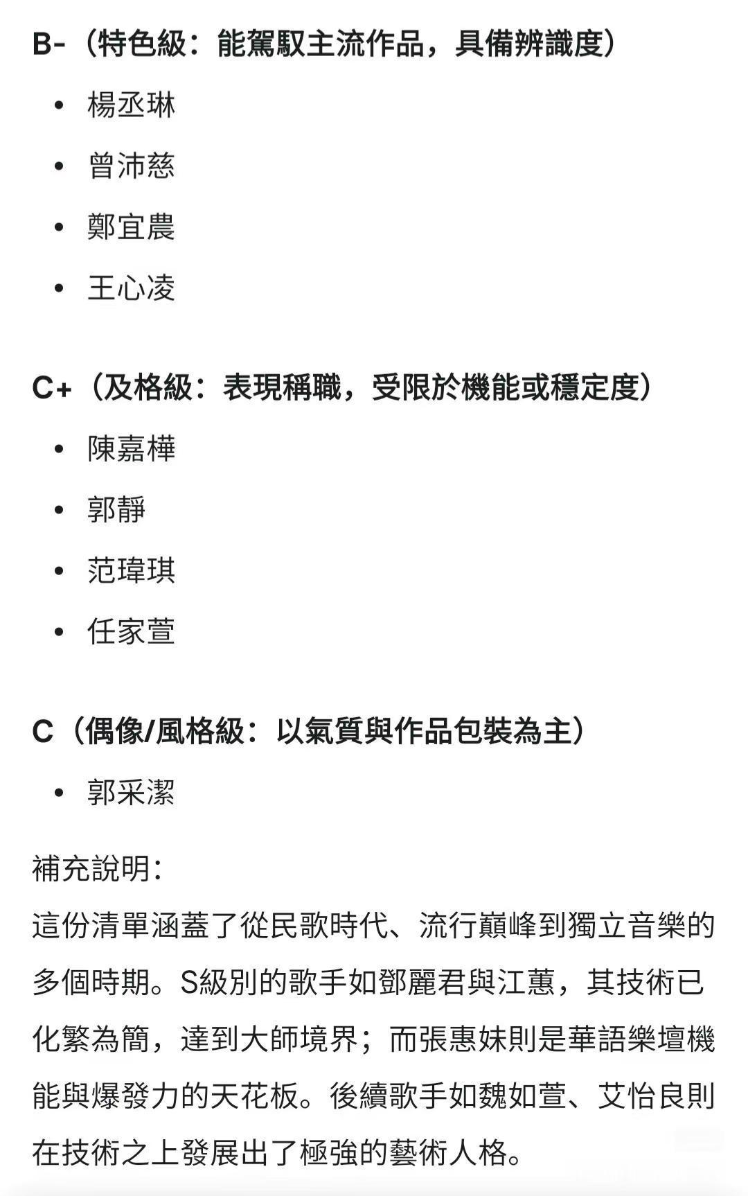 Gemini台湾女歌手唱功排行:你最喜欢哪一位?