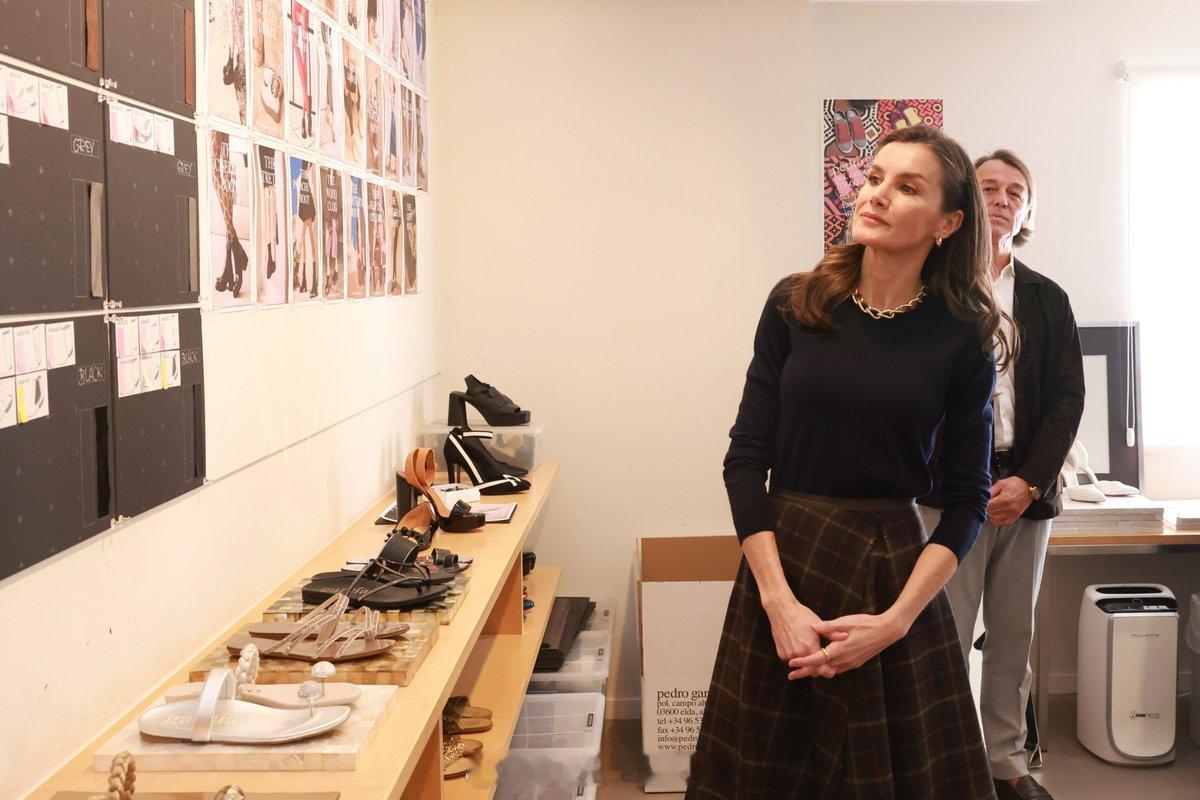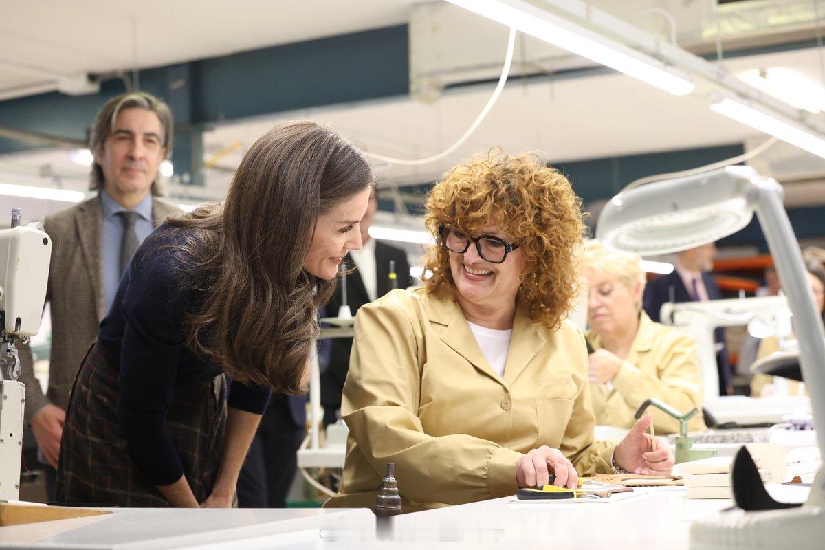 2.19 西班牙王后莱蒂齐亚参观有百年历史的鞋履工厂,毛衣来自Falconeri ,半裙来自BIMBA Y LOLA来都来了,不顺道买双凉拖嘛