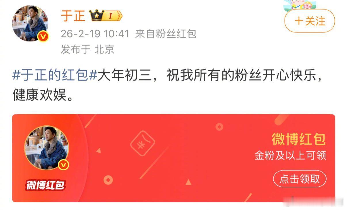 于正对自己的人气真是太自信了。在微博上发红包,仅限金粉领取,结果过去整整一天了,红包还没领完