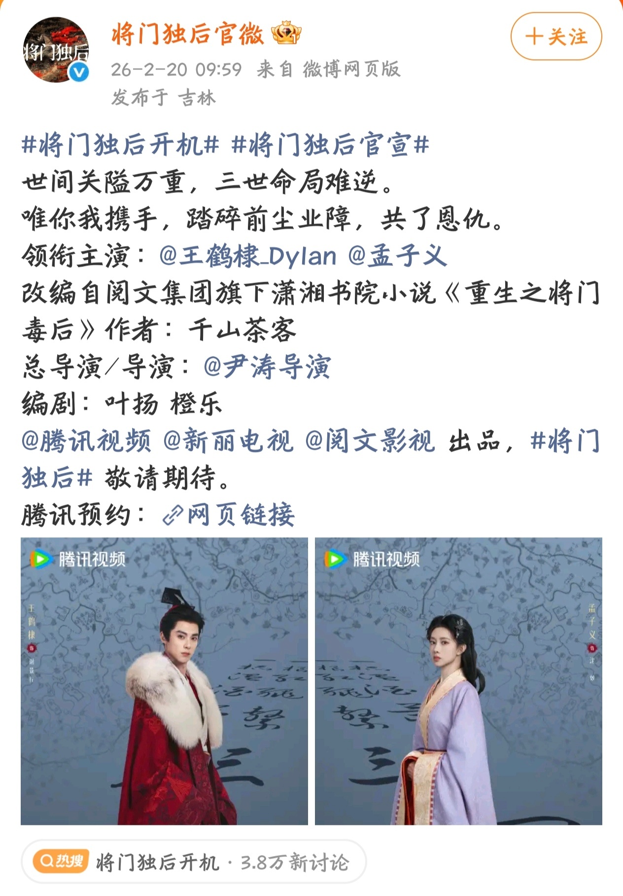 将门独后开机两位都是领衔主演是平番吗?唉不管怎么样吧反正角色已经定了是王