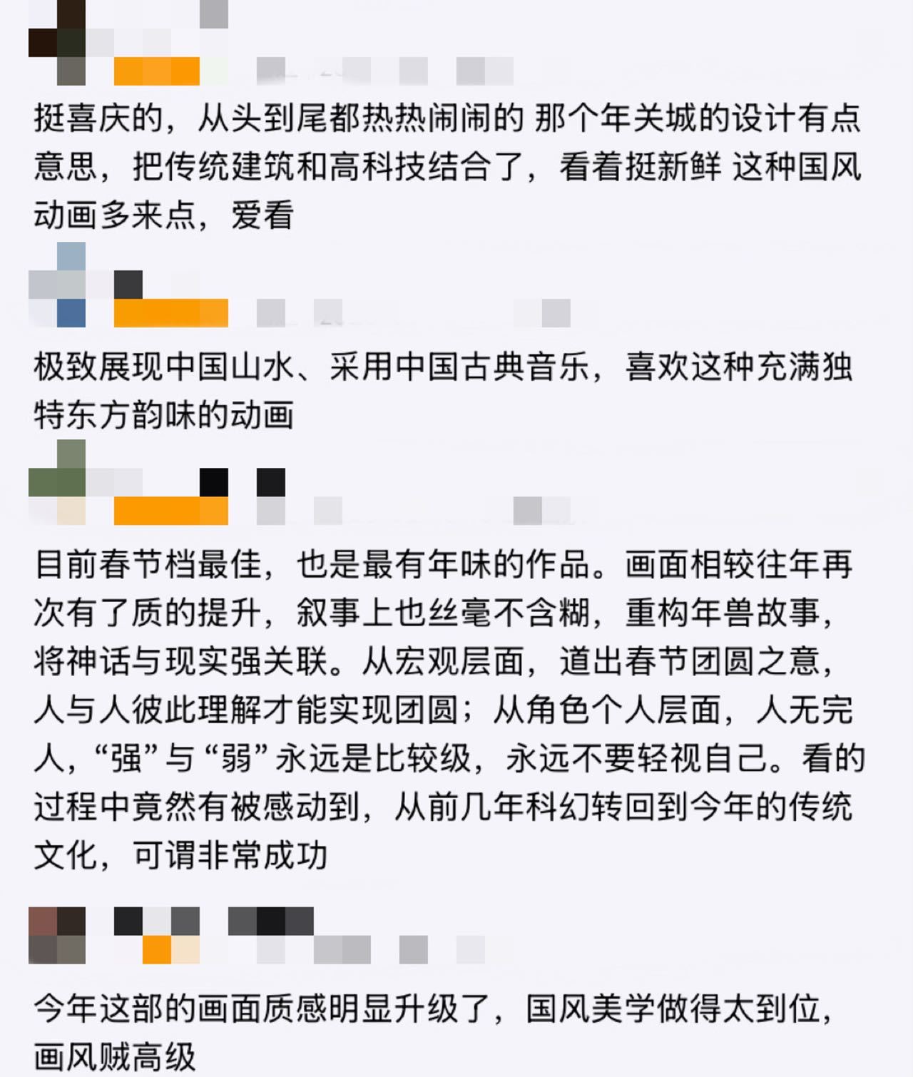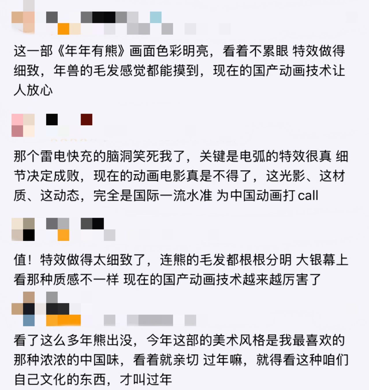 用中式奇幻打开新的故事,讲透了个人成长与过年团圆,熊大从执着变强到接纳不完美,年兽“年年”的故事也非常戳人,里子面子都很有深度,很有新意。而且还是春节档年味浓郁最浓的片子,视效惊艳,笑点与温情兼备,既给孩子欢乐,也能治愈成年人的焦虑。它不仅只是合家欢动画,更是春节里最暖的陪伴,没有不去品鉴的义务!春节档马上有戏春节档影评大赛