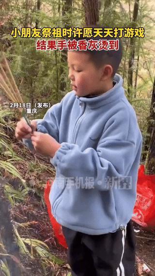 “彻底解释不清了!”重庆,一小朋友和家里人祭祖时,给老祖宗许了个愿,希望以后可以天天打游戏。结果,上香时手突然被掉落的香灰烫到!网友:“哈哈,老祖宗都听不下去了!” 这段视频发到网上后,很快就成了大家茶余饭后的乐子,评论区里全是善意的调侃,有人说老祖宗当场驳回了愿望,还有人打趣这是先祖在线劝孩子好好成长。笑过之后我们都能看出来,这只是生活里一场再普通不过的巧合,和所谓的“先祖显灵”没有半点关系,更不能把这个小意外当成封建迷信的由头。 香燃烧之后的灰烬本身带着余温,不小心落在皮肤上会有灼热感,这是基本的生活常识,和孩子许下的愿望没有任何关联。小朋友的想法纯粹又天真,在他的世界里,天天打游戏就是最开心的事,童言无忌本就是童年最珍贵的样子,没必要用成年人的眼光去苛责,更不能把意外和许愿强行绑定。 祭祖是刻在中国人骨子里的传统,这份仪式感从来不是用来索要私欲的满足,而是带着感恩之心缅怀先辈,记住祖辈的付出与坚守,把勤俭、上进、懂事的家风一代代传下去。春节跟着家人上山扫墓、恭敬上香,是让孩子知道自己的根在哪里,明白好好生活、努力成长,才是对先祖最好的告慰。 这件事最动人的地方,从来不是所谓的“老祖宗反对”,而是童真与传统碰撞出的温暖烟火气。严肃的祭祖仪式里,多了孩子的天真话语,反而让传统文化变得更鲜活、更贴近生活。家长也没有责怪孩子的小愿望,只是温柔地安抚他被烫到的小手,这样的画面,比刻板的仪式更有传承的意义。 网络上的趣味玩梗,只是大家对童真的喜爱,没人真的相信这是先祖在“教训”孩子。我们乐于看到这样轻松的传承,也更该清醒地看待传统习俗,丢掉迷信的枷锁,留住感恩与思念的内核。游戏可以是童年的乐趣,但成长路上还有学习、陪伴、探索更值得珍惜的事,借着这个小插曲,慢慢引导孩子合理安排时间,才是最有意义的事。 传统文化的延续,从来不是墨守成规,而是在理解中温柔传递。让孩子在轻松的氛围里感受家族的温暖,明白先祖的精神,比生硬的说教更能打动人心。香灰烫到的小意外,只是成长里的一个小玩笑,藏在祭祖背后的爱与责任,才是我们要一直守护的初心。 各位读者你们怎么看?欢迎在评论区讨论。