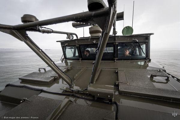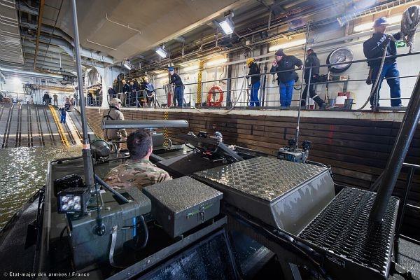 在跨军种与跨盟国联合大型军演“猎户座2026”期间, 法国海军利用“西北风”级两栖攻击舰“雷霆”号通过布雷斯特锚地的机会,测试海军陆战队步枪兵营的 CB 90 艇。
