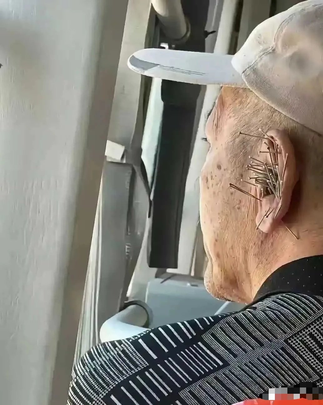 在车上遇见的这个爷爷,他的耳钉好特别啊