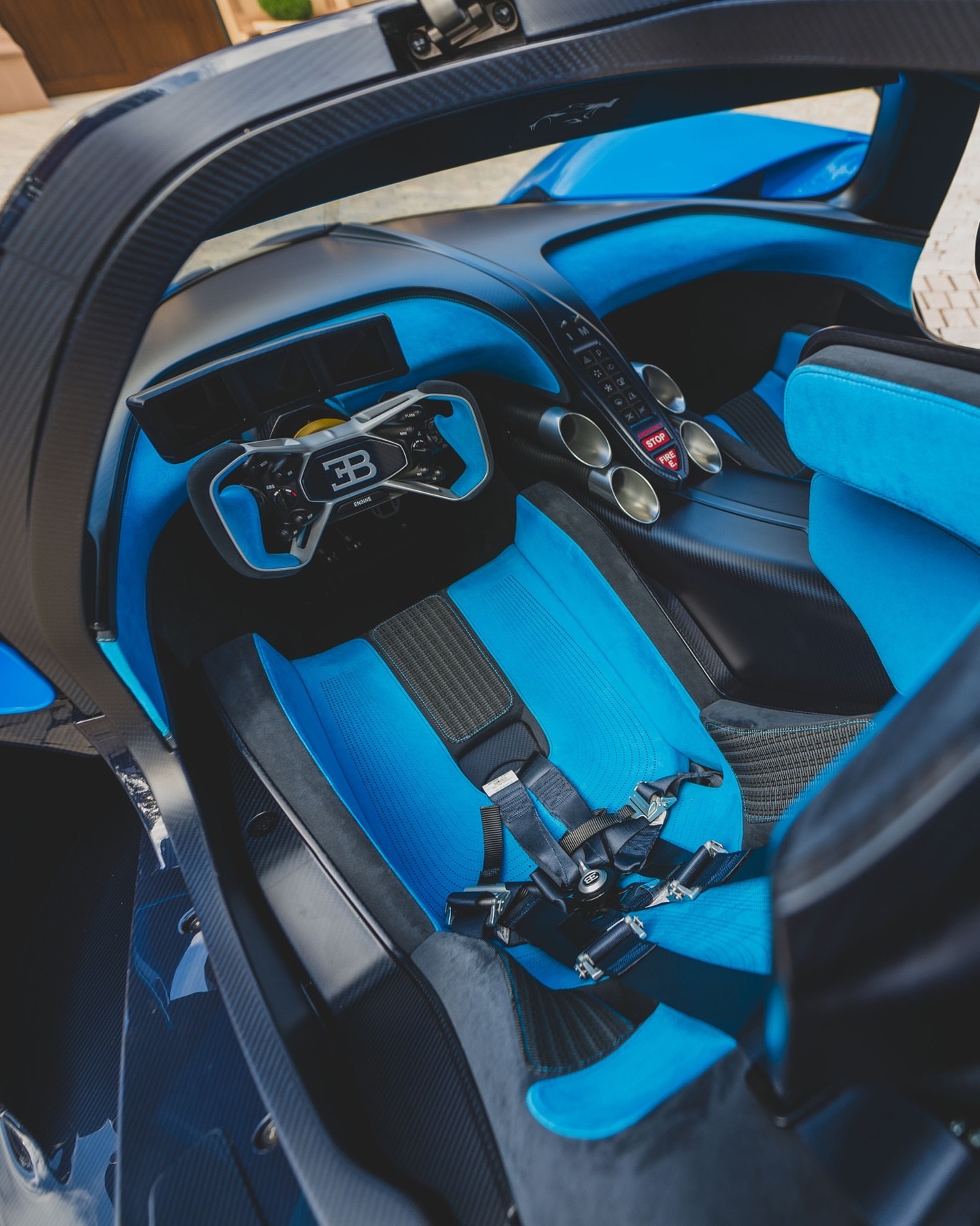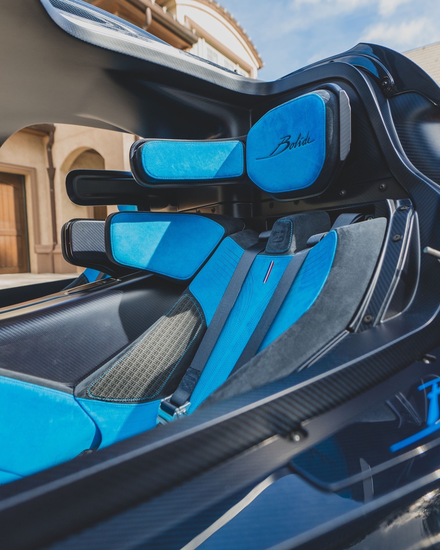 该车采用蓝皇家色调的碳纤维车身,配以敏捷蓝色装饰,内饰为Bugatti浅蓝色和湖蓝色,附有工厂飞行箱、工具、备胎和配件。作为W16项目的最后一章,Bolide更像是一块Bugatti工程历史的标志性作品。