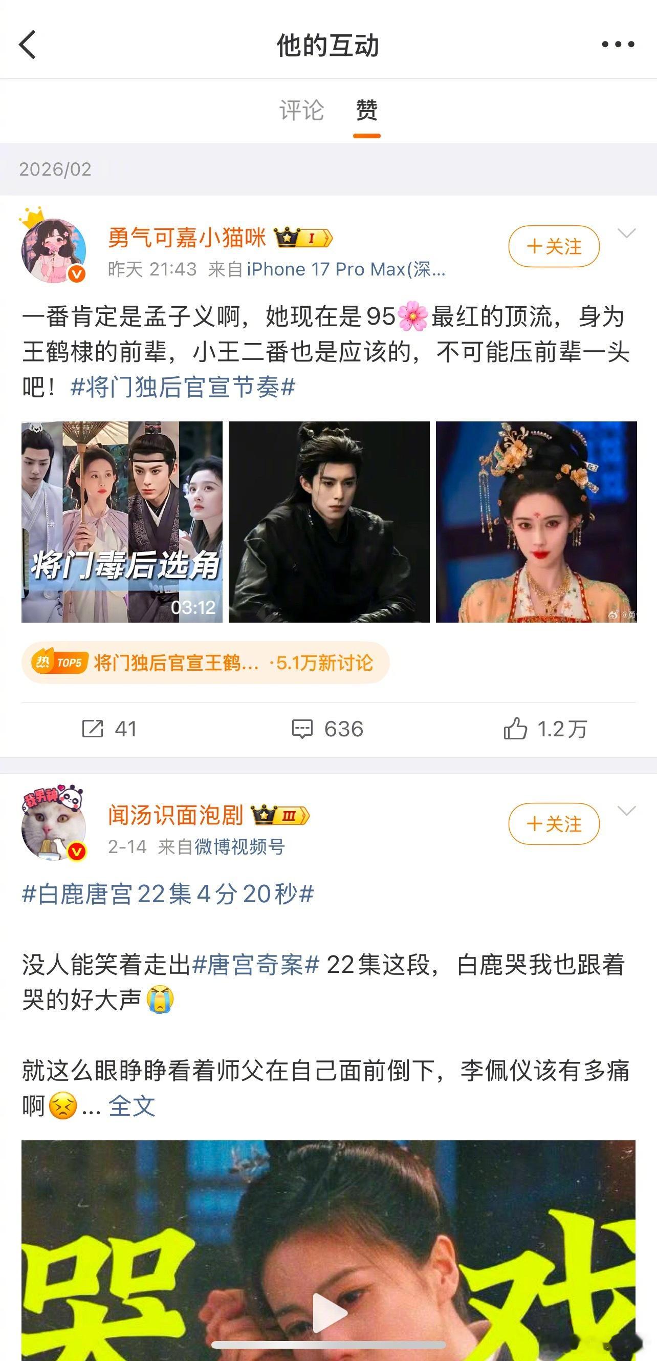 《将门独后》导演尹涛点赞说孟子义是一番王鹤棣是二番的微博