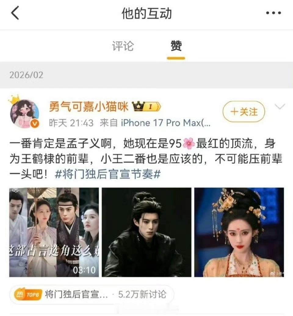 尹涛手滑了吧,这剧番位已经官宣王鹤棣一番压孟子义,还能改吗?