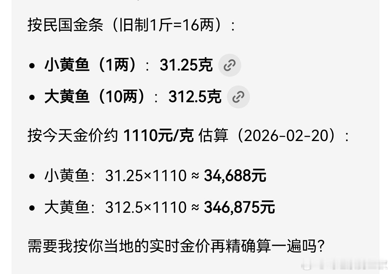 抗战爆发后,由于各地的货币不通用,所以银元一直是当时的硬通货。因为银元是有一定的重量的一块银元26.7克,100块大洋也就5斤左右,带起来很不方便,此时换成金条3根,也就是100克。当时很多情报人员要在敌占区活动,所以国民政府专门打造了一批金条,也就是大家常说的"黄鱼".。