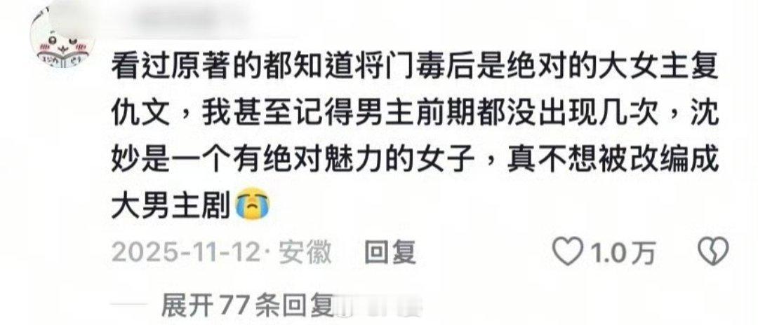 尹涛点赞孟子义一番的微博导演尹涛点赞争议微博,将《将门毒后》的番位问题推上风口浪尖。原著大女主设定与剧版男一番配置的冲突,折射出当下影视行业流量与内容博弈的现实。是创作妥协,还是营销预热?舆论已分化,口碑危机未播先至。流量可以带来热度,但能撑起一部剧的内核吗?