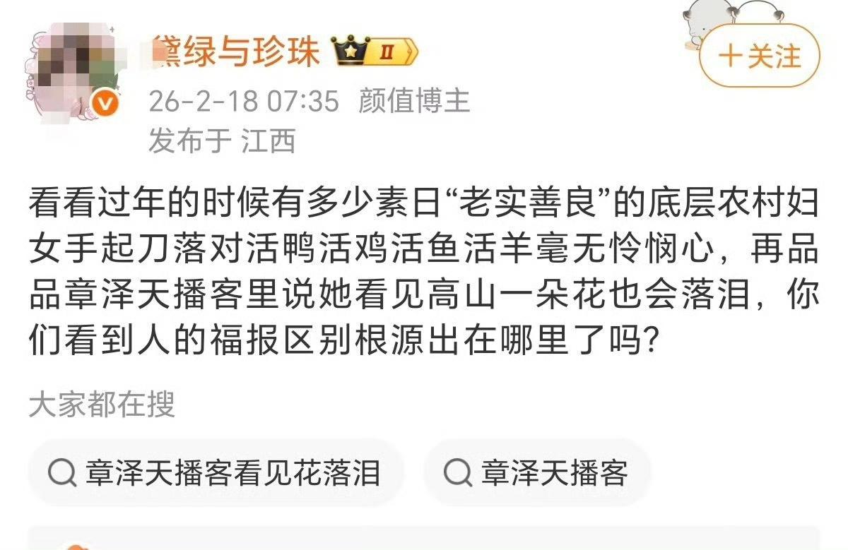 这是信啥呢?信佛吗?过年了,这厮看到“底层农村妇女”杀鸡鸭鱼羊受不了? 但是,还是这厮,平常吃青椒炒肉丝、红烧大排、火腿肠,吃的挺得劲、挺过瘾的啊! 这种人虚伪,且有病。你自己信佛,就管住你自己的嘴巴得了,对别人叽叽歪歪个啥的?