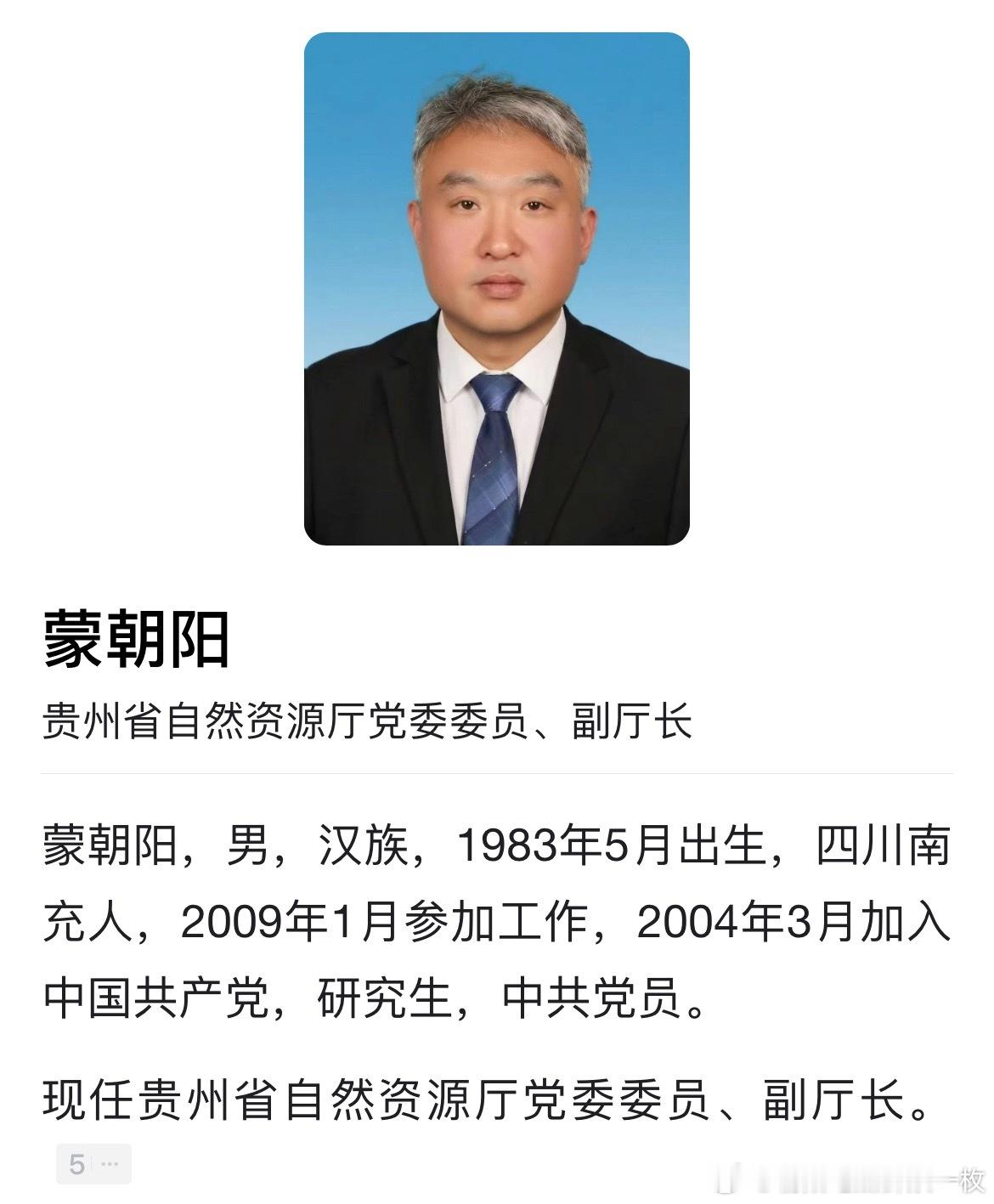 蒙朝阳任贵州省自然资源厅副厅长(试用期一年)。