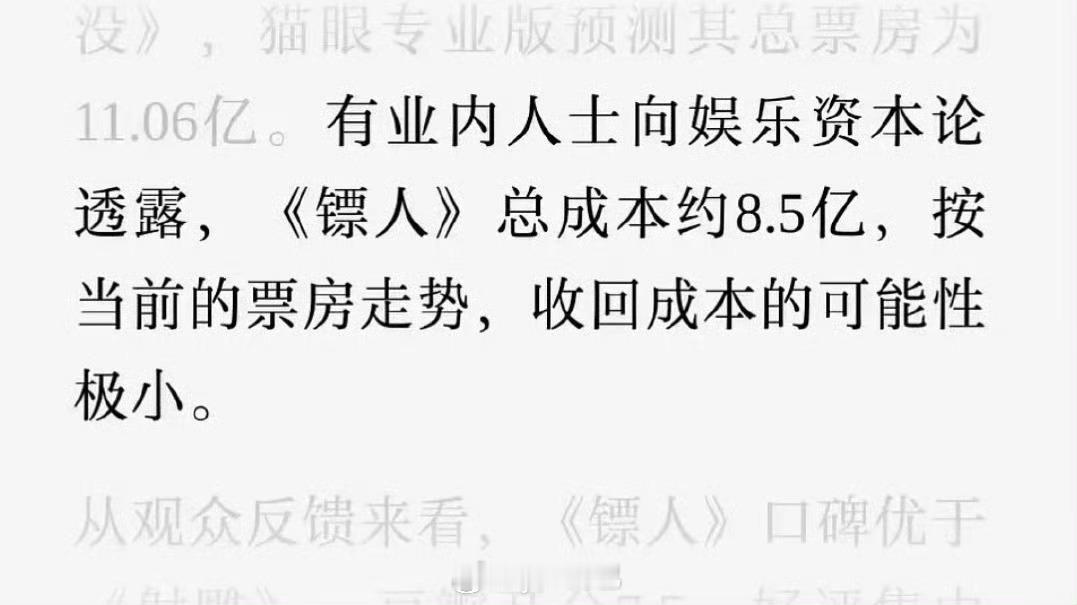 镖人成本8.5亿?