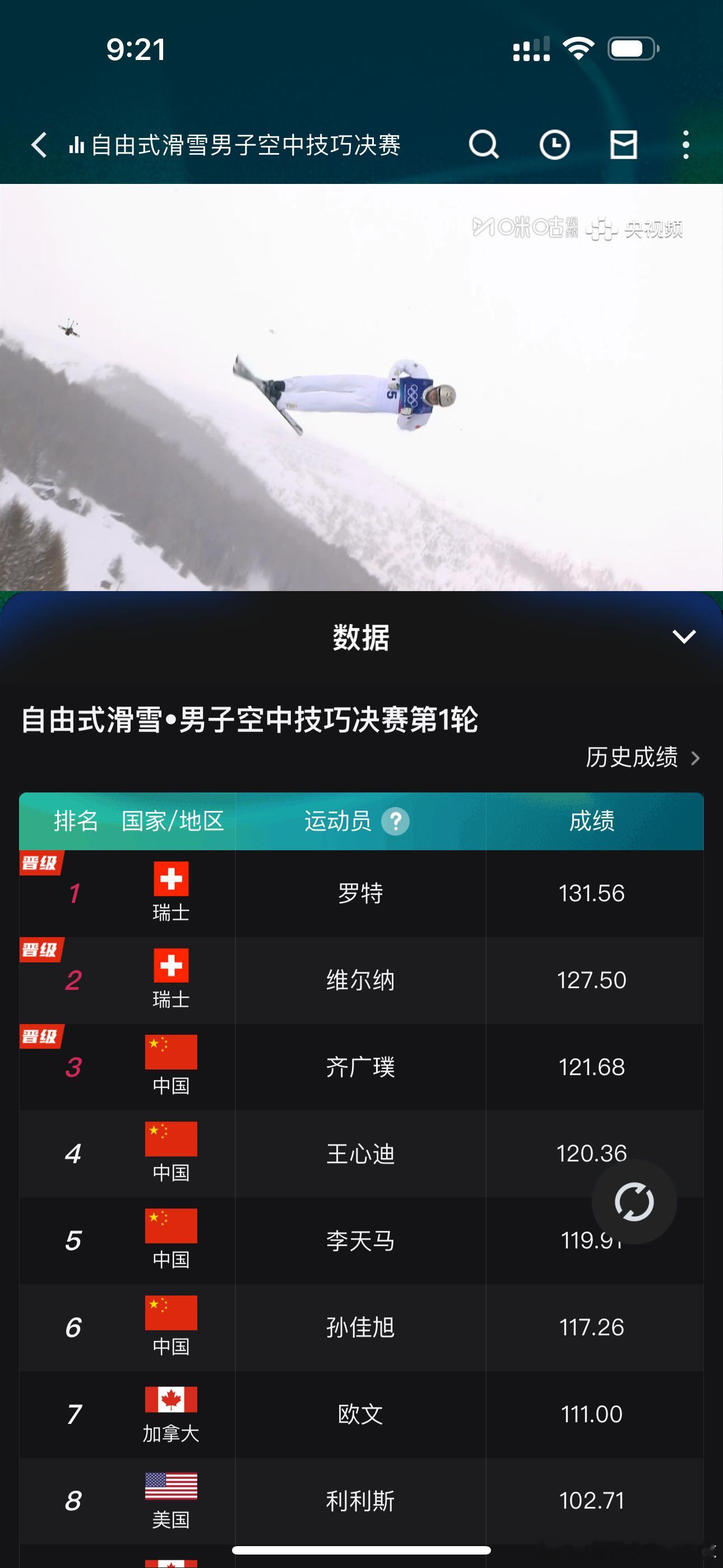 四中国选手晋级空中技巧奖牌轮 四个中国vs两个瑞士加油👏