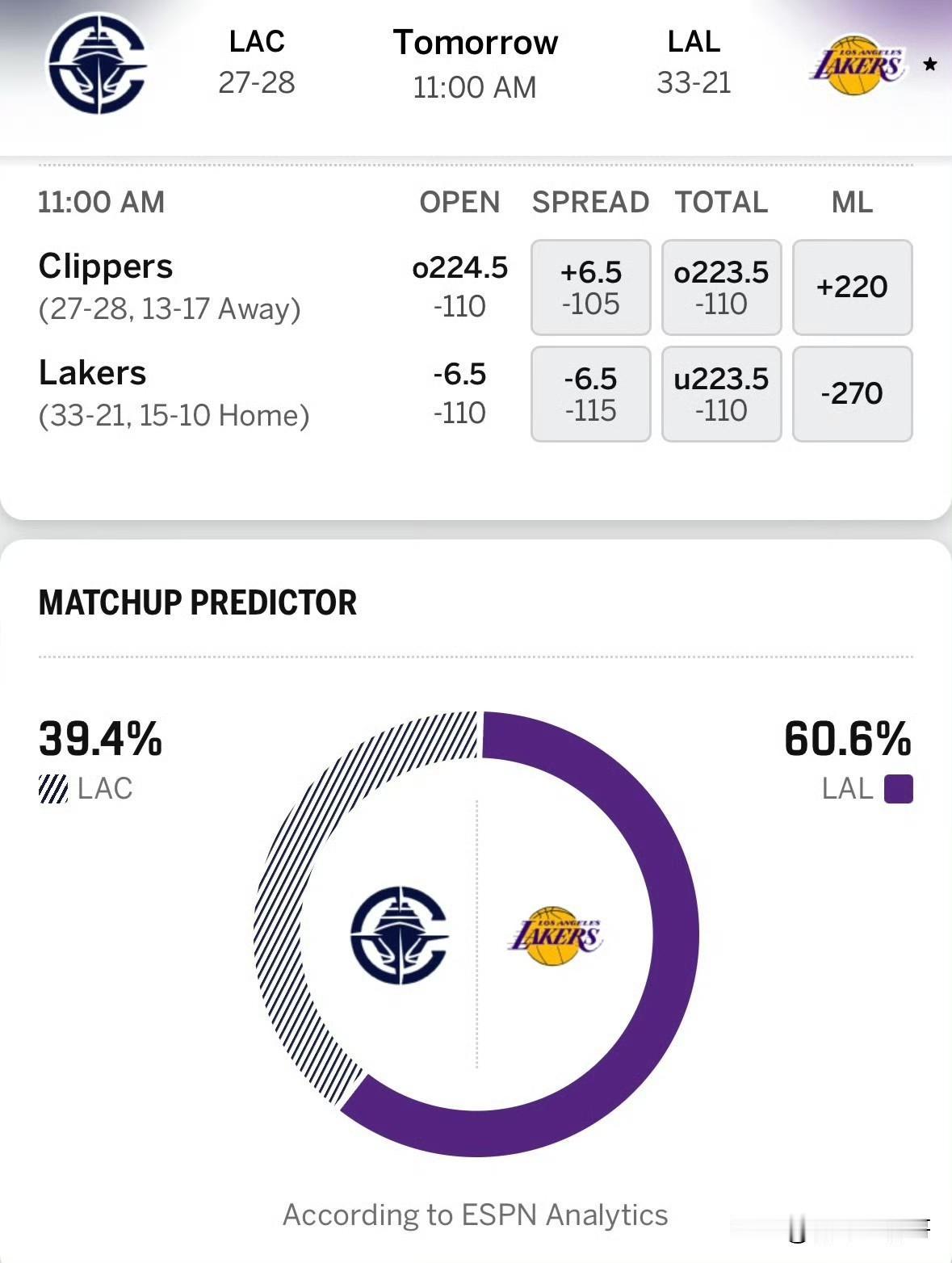 快船vs湖人比赛预告!!!快船对阵湖人比赛预测,湖人被看好! 北京时间2月21日,湖人将坐镇主场迎战同城的快船队,再次上演德比大战,快船是背靠背作战,湖人则是全明星后的首场比赛,一起来看下比赛预告吧! 湖人目前的伤病名单没有任何记录,也就是全员都可以出战了。 快船方面比尔和加兰都不打,其他人正常出战。 目前从ESPN给出的预测结果来看,湖人以超过6成的胜率被看好,而最近状态不错的快船反而被看衰了,而且湖人主场给出了-6.5的数据,还是有些差距的。 快船在交易截止日完成交易后注入了新鲜的血液,马瑟林在今天战胜掘金的比赛发挥相当出色,他是快船的重要轮换,明天的比赛将会是非常的精彩,大家记得观看哦。年底的快乐是卡罗拉给的 湖人 快船 快船队 nba 湖人 湖人赛程 快船队阵容
