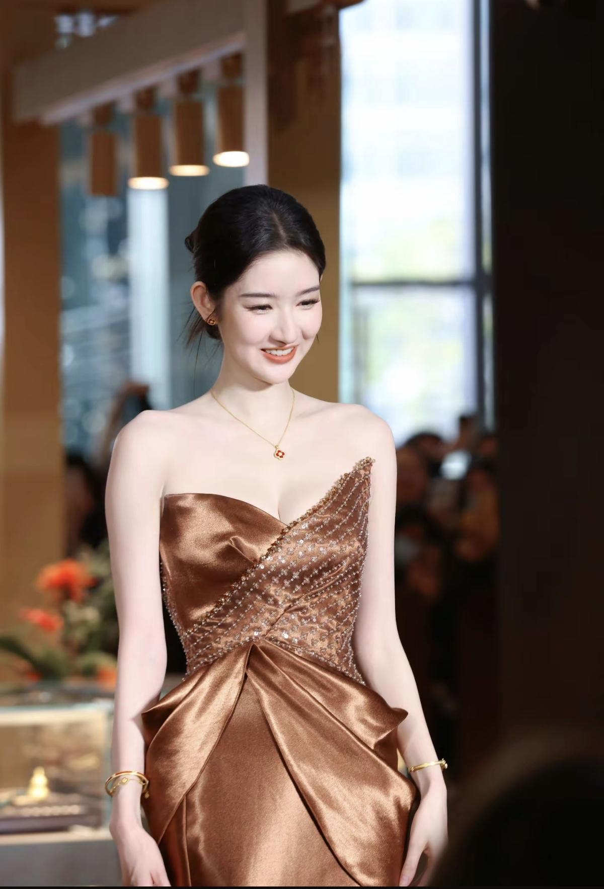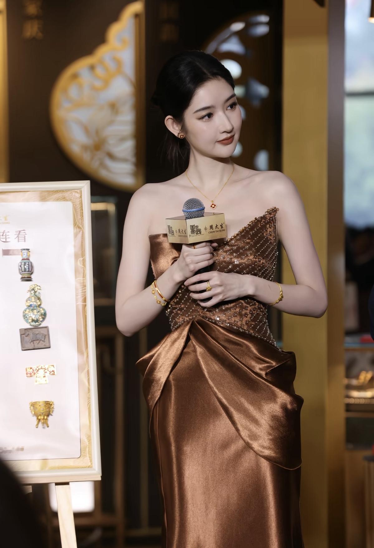 鎏金礼服映着暖光,王玉雯在周大生的金饰映衬下,把东方贵气和现代优雅拿捏得恰到好处[比心] 每一件金饰都像在诉说着千年的故事,而她就是那个把故事穿在身上的人[赞][加一]娱乐明星