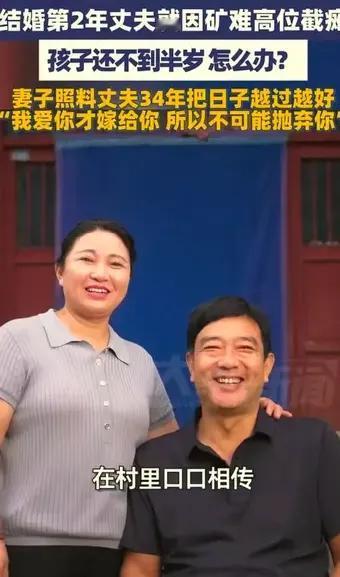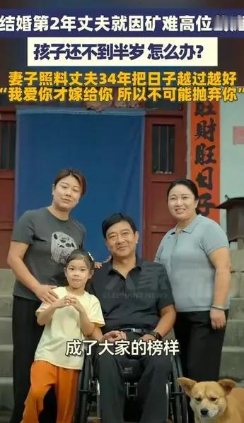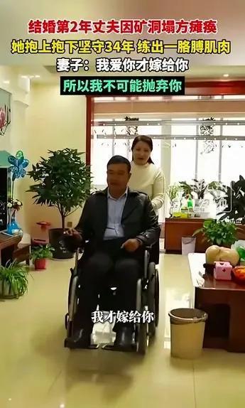 河南女子张万彩,坚守34年,终于让全中国看见。她出生于1971年人,今年55岁。1992年,张万彩在和丈夫结婚一年后,她老公因为在矿上上班出了事故,成为了高位截瘫的残疾人。那时她刚生下女儿,还不到半年。娘家人劝她离开,老公也哭着让妻子走。但是张万彩没有听任何人的劝阻,她坚定地留在了这个家。她对丈夫说:我因为爱你才嫁给你的,我不可能离开你。坚守到至今已经34年。不是是三四个月,也不是三四年,是34年的春秋冬夏。她每天抱着高位截瘫的丈夫,给他翻身,擦洗身体,抱他坐轮椅,给他喂饭。带他出去锻炼,她丈夫长得大高个,人也挺胖,她自己都练成了大力士。同时她还想着赚钱养家,各种活都干过。一路风风雨雨走来,现在还有了自己的农产品项目。她的女儿已经成家,她还有了外孙女。她说我的丈夫是我的大宝,我的女儿是我的宝宝,我的外孙女是我的小宝。 她在苦难的土壤上,用双手种上了幸福的花朵。其中的艰辛只有她和她的丈夫知道。 我爱你,才嫁给你,所以我不会抛弃你。这大概是夫妻之间最美好的情话吧!