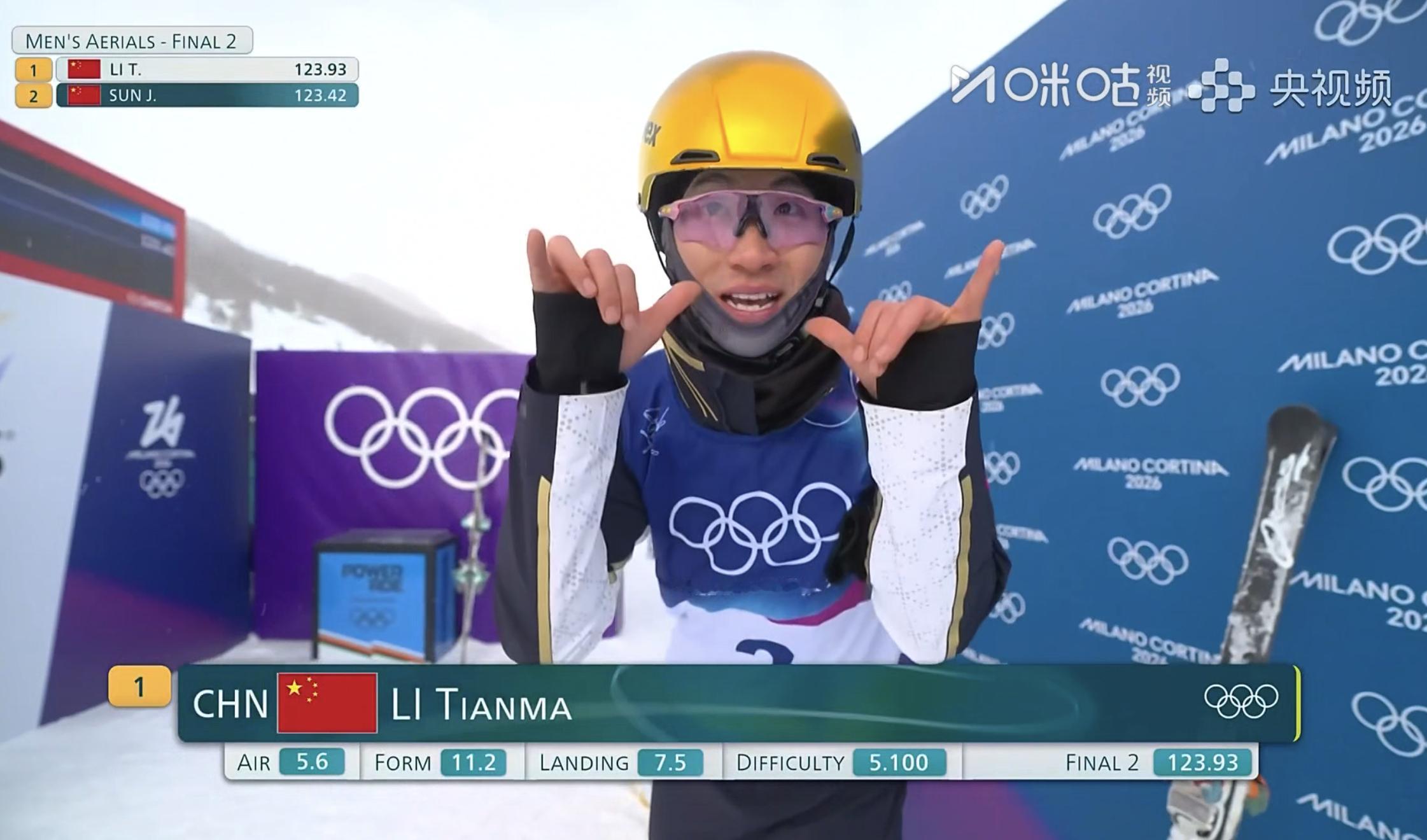 🏅王心迪金牌中国队拿下第4金米兰冬奥会自由式滑雪男子空中技巧决赛两轮比拼结束,