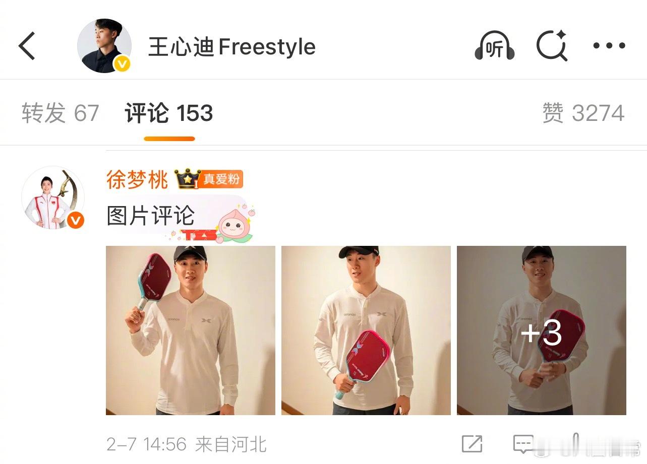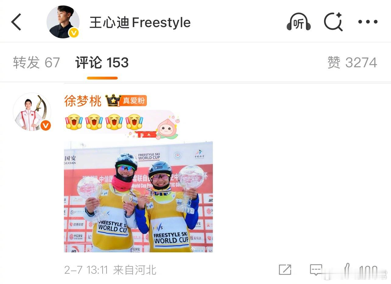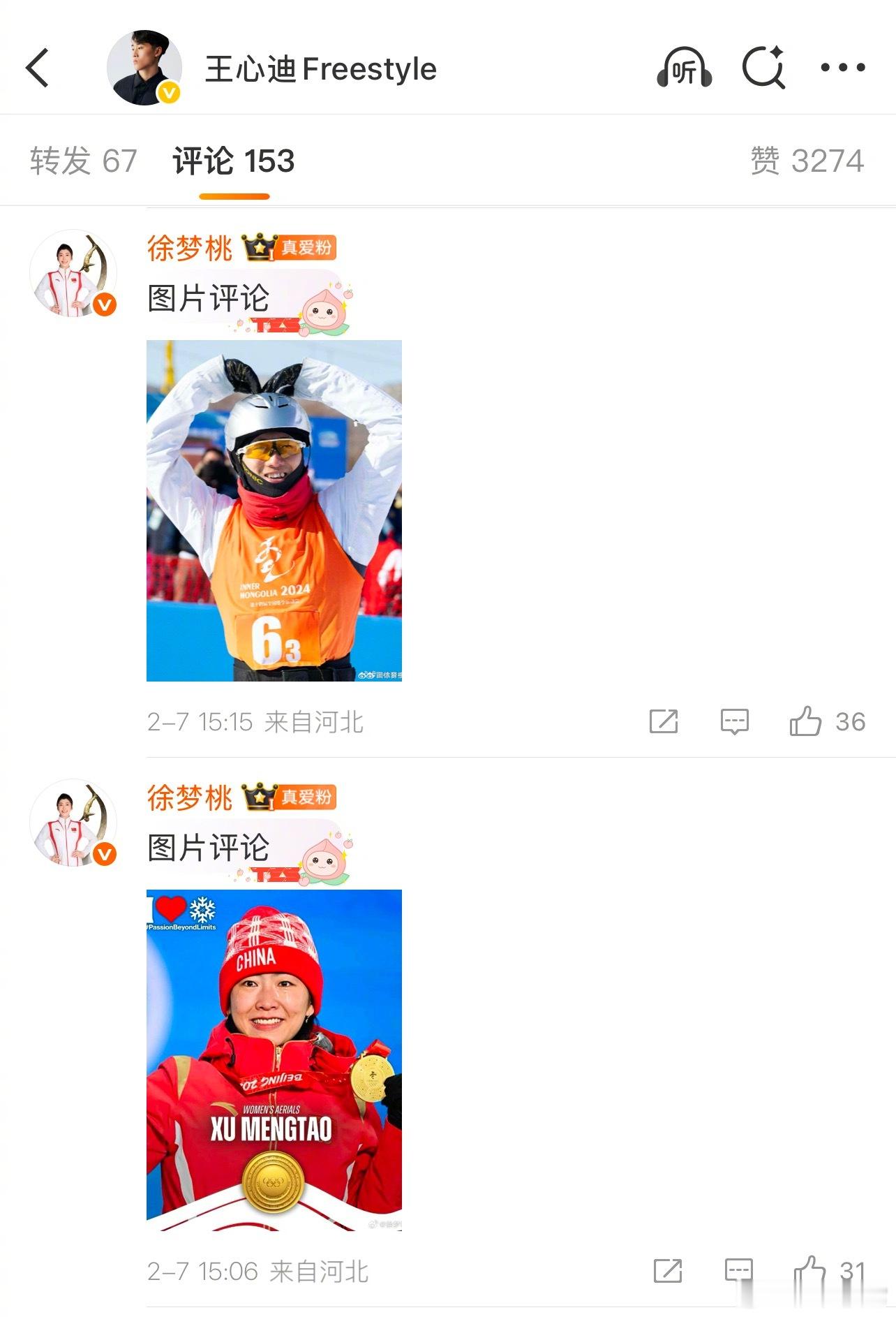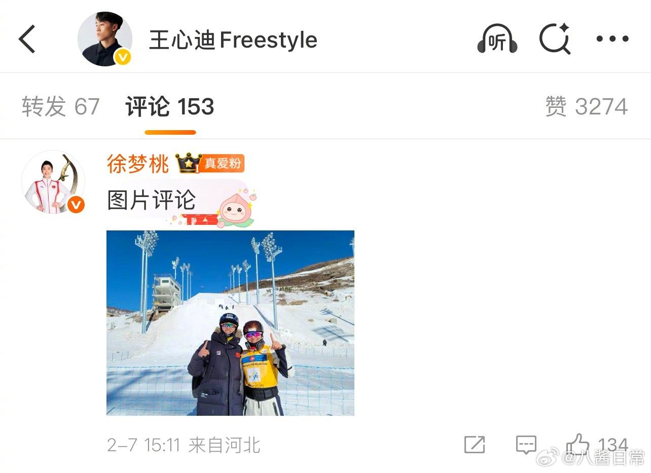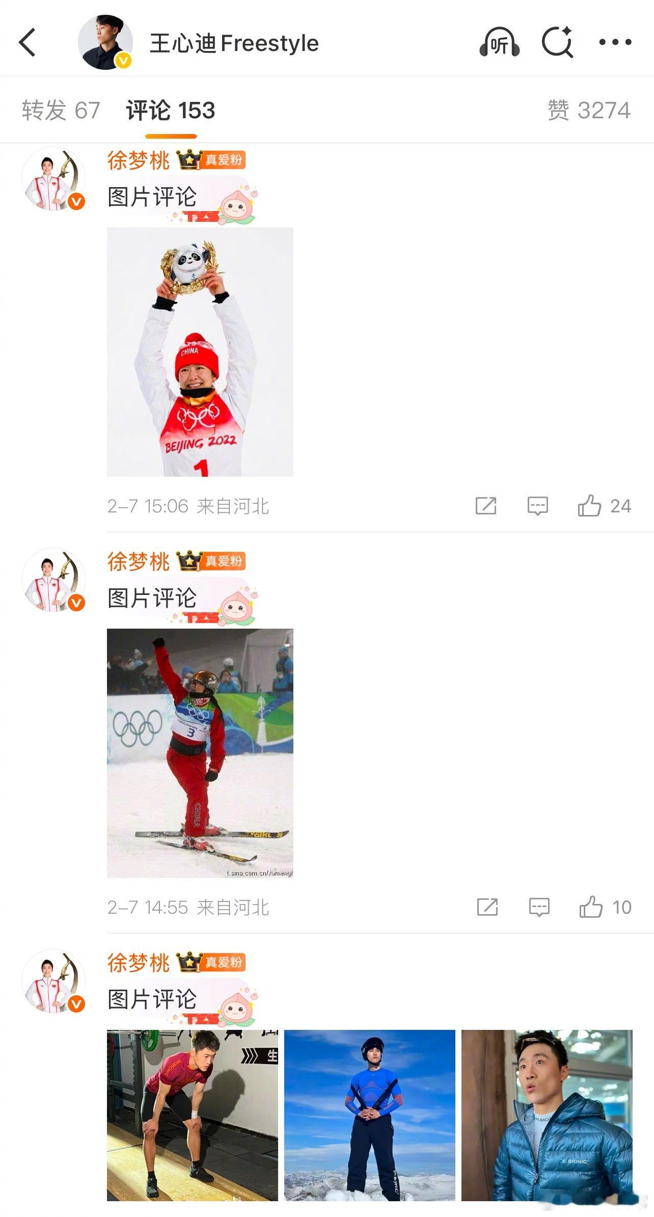 王心迪这条微博下面都是徐梦桃的评论,真夫妻就是好嗑