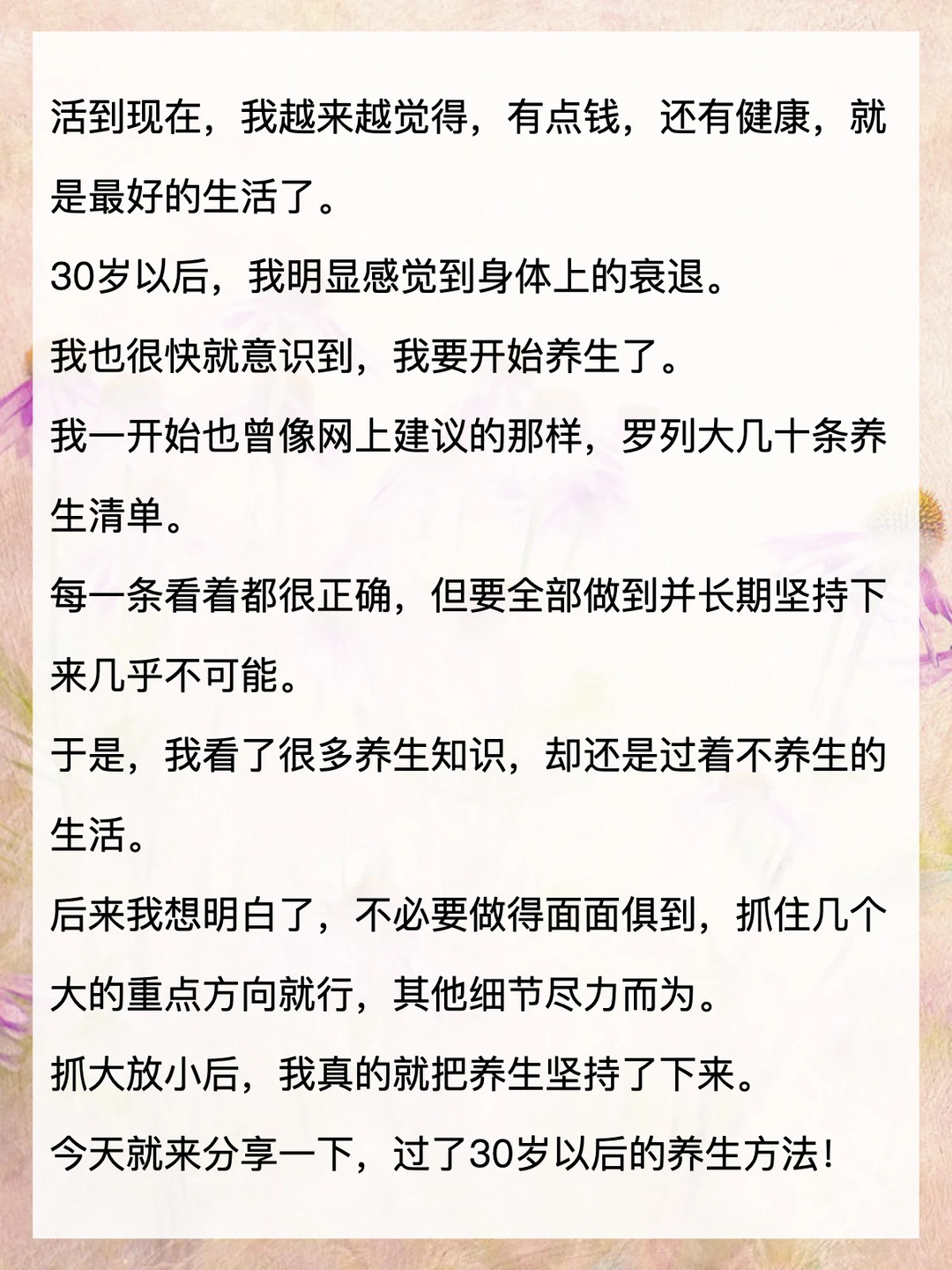 人到中年,不再是拼命追逐,而是守住底线、稳住重心。1. 健康第一身体是唯