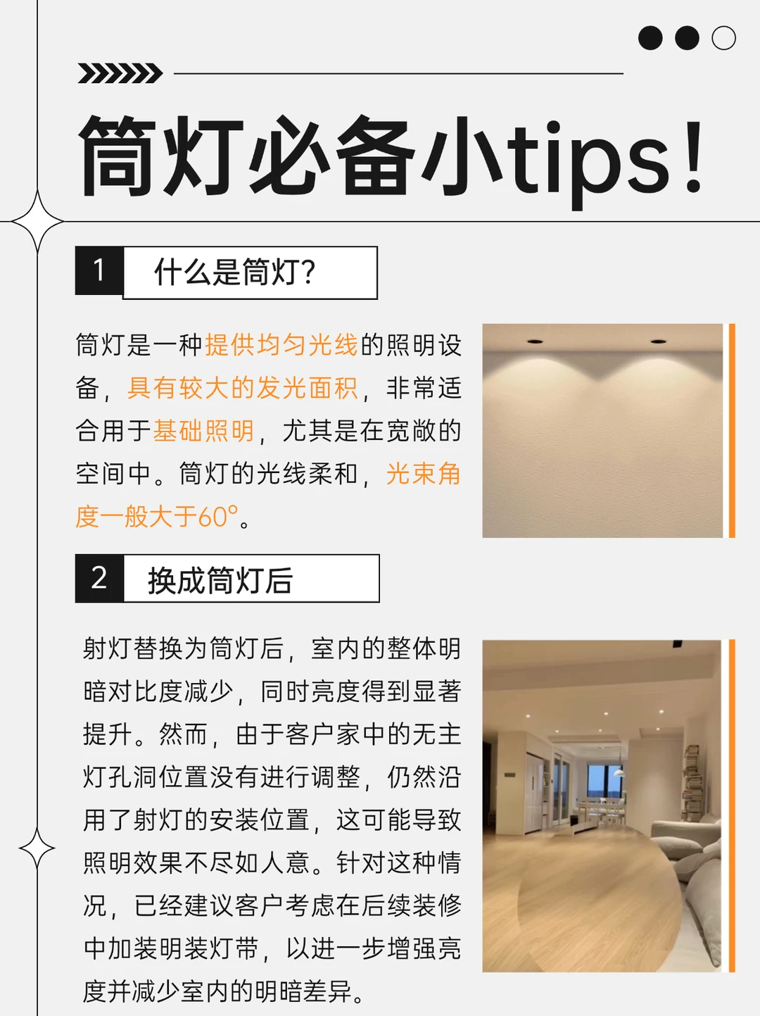 ✔️客厅:主灯+四周筒灯(基础亮)+背景墙射灯(洗墙氛围感)