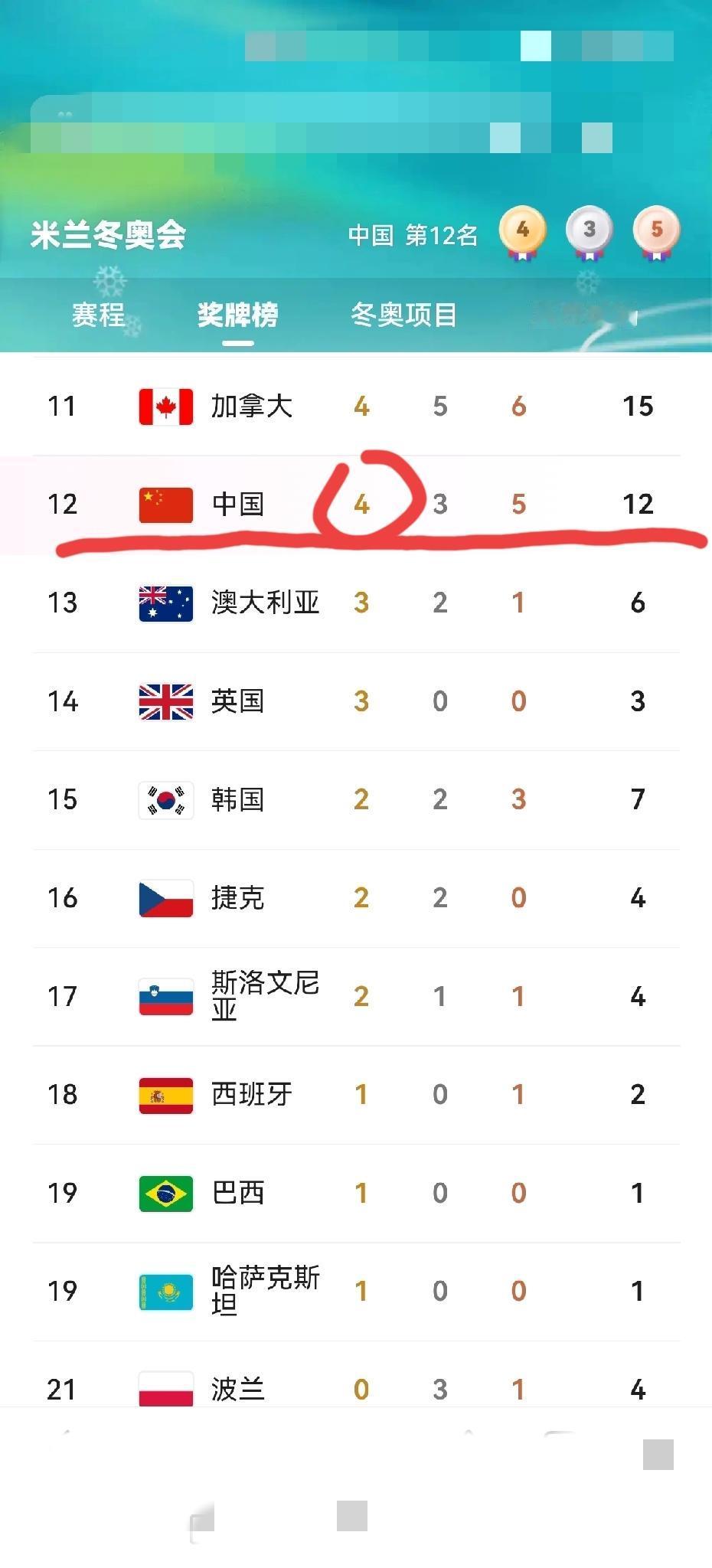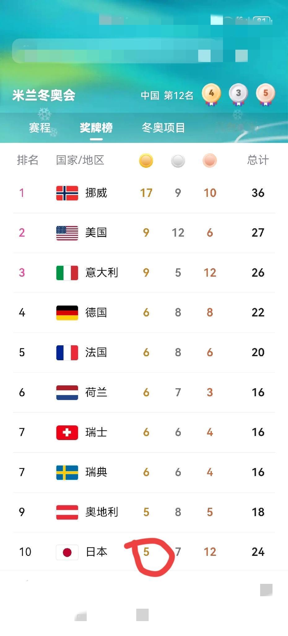 中国队再夺第4金,有望追平甚至超越日本队,你觉得希望大吗? 刚刚,今天(2月20日)晚上,意大利米兰冬奥会上,中国队再传捷报,中国队选手王心迪在自由式滑雪男子空中技巧决赛中喜获冠军,为中国队再添1枚金牌,这枚金牌也是中国队在本届冬奥会上获得的第4枚金牌。 至此,中国队在奖牌榜上再向前进了两位,为第12位。 特别注意到的是,日本队目前以5枚金牌,奖牌总数24枚位居奖牌榜第10位。 如果不看奖牌总数,只看金牌数,中国队目前只比日本队少1枚,而中国队后面至少还有自由式滑雪女子U型场地(谷爱凌)项目和自由式滑雪空中技巧混合团体(徐梦桃/齐广璞)项目夺金概率极高,另外 男子空中技巧、女子短道速滑接力等项目,如果发挥非常好,也不是没有夺金的可能性。 只是不知道日本队后面还有哪些项目具有夺金的可能性,你知道吗? 中国队加油!